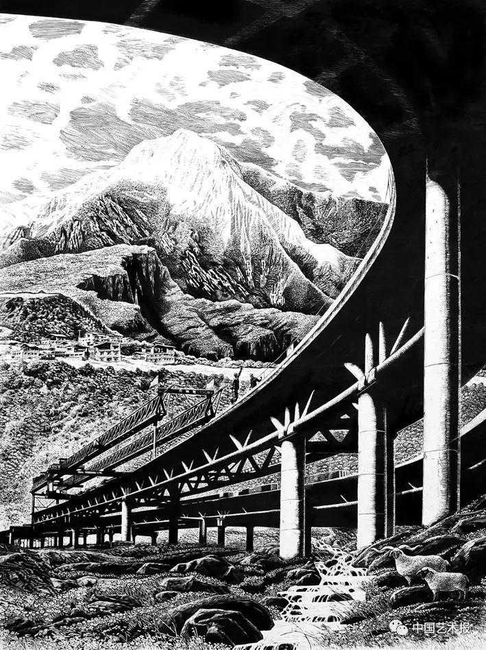 通向汶川的桥油画胡贵龙