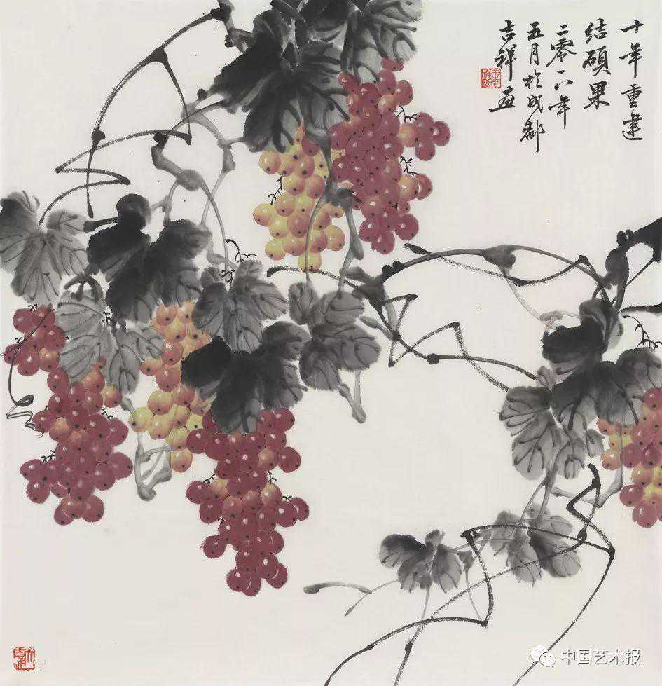 王吉祥《十年重建结硕果》69cm×68cm2018年