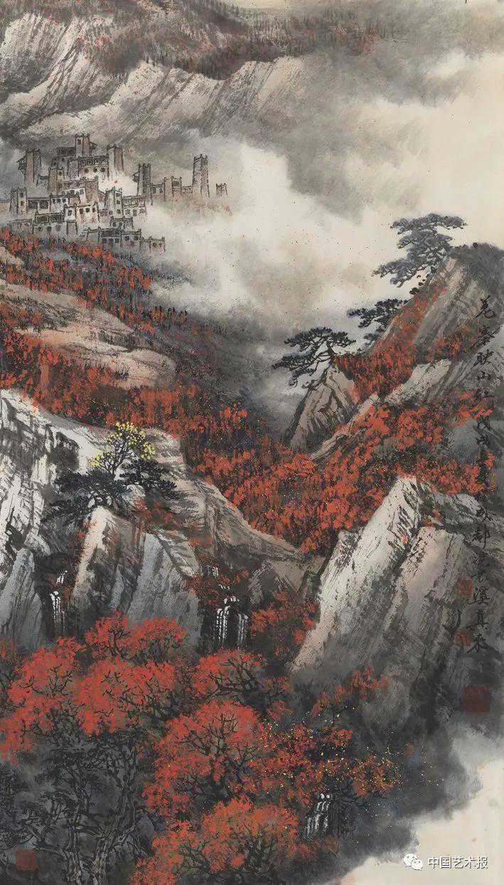 胡真来《羌寨映山红》100cm×50cm2018年