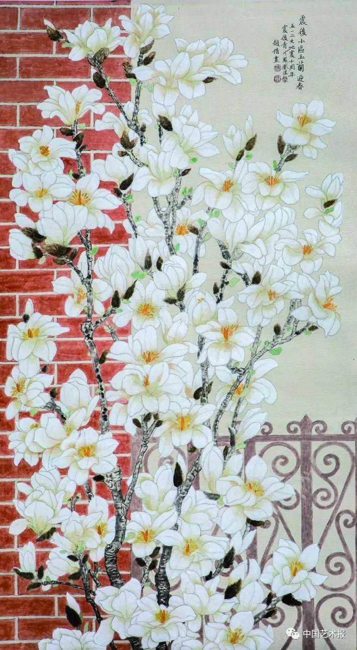 赵倩《震后小区玉兰迎春》