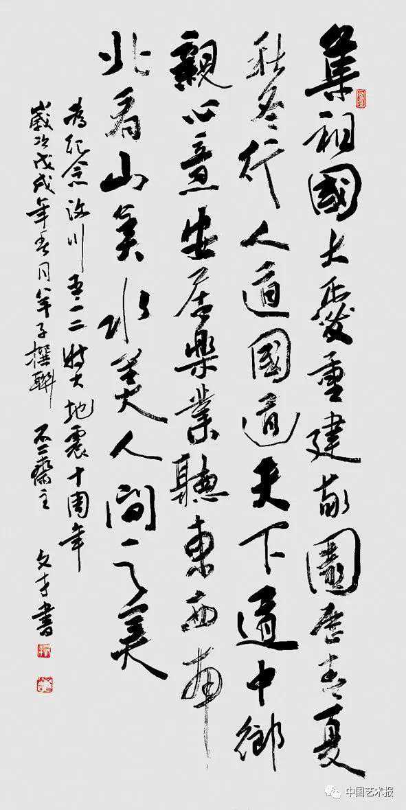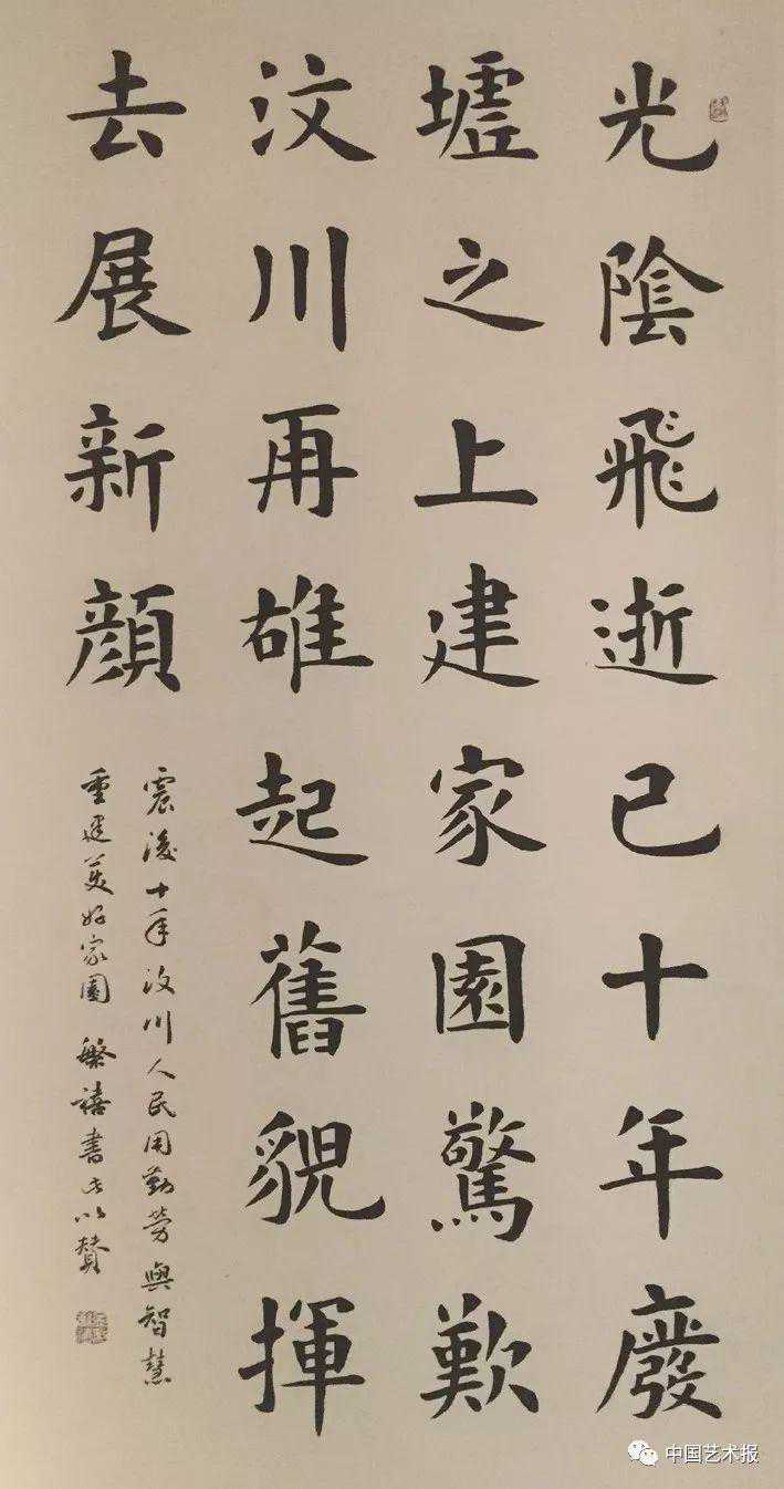 2008年5月12日14时28分04秒,里氏8.0级特大地震突袭四川汶川,瞬间,山崩地裂,举国同悲。十年来,四川灾区各地在党的亲切关怀和带领下、在全国人民的强力支持下涅槃新生,取得了瞩目成就。十年来,汶川灾区的文艺工作者充分发挥文艺凝心聚力、提振精神、鼓舞斗志的巨大精神力量,在灾区震后重建、跨越发展中发挥着独特的积极作用。在今天这个特别的日子里,我们推送一组来自汶川县文联、青川县文联、什邡市文联和成都市文联的书法、美术作品,展现灾区广大文艺工作者的昂扬风貌和推动文艺发展的显著成就。