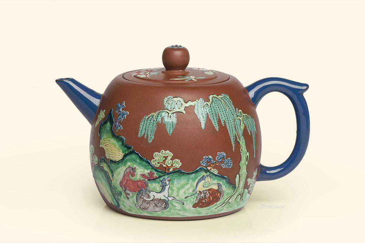 1889清中晚期邵顺昌制粉彩朱泥壶