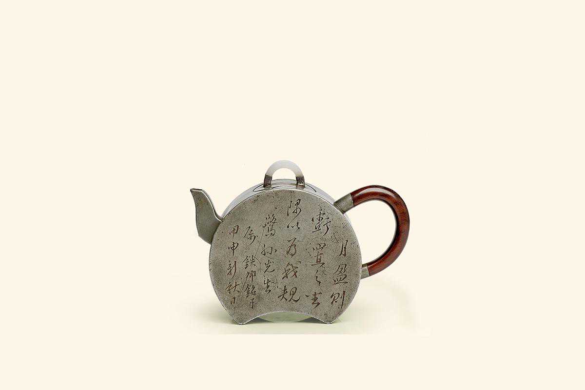 1871清中晚期秋月款铁卿刻锡壶