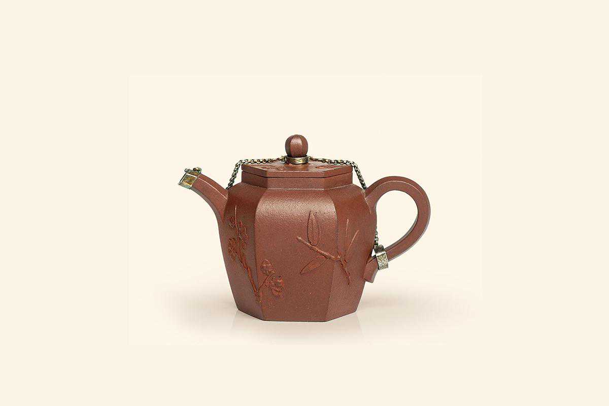 1894清早期陈俊生制六方贴花壶