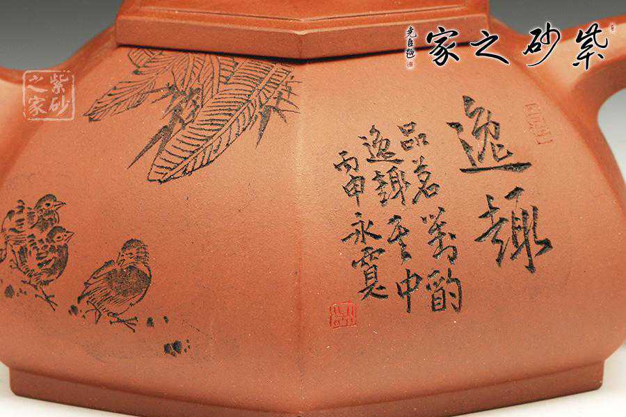 1895清晚期龙印友兰款朱泥仿古壶