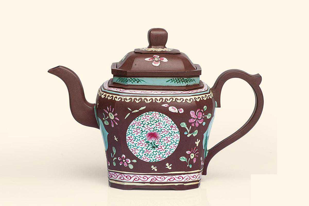 1861清早期四方贴花朱砂壶