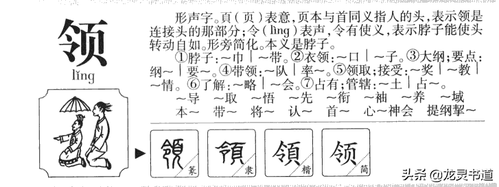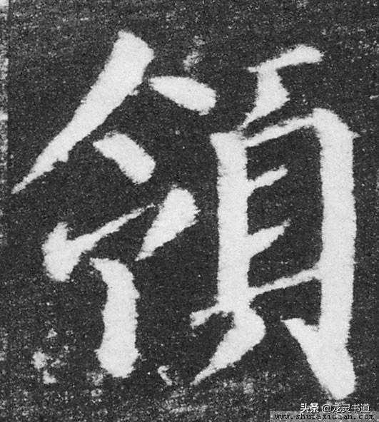 左部“令”字斜势抗肩,不要写宽。首撇起笔向右下方落笔,然后转锋向左下行笔,注意角度,稍直,稍长;右捺写成小点,靠上,以避让右部;里面小点注意位置,角度稍平,轻灵;横撇起笔要左探,横画写成提笔,大抗肩,到位后顿笔写撇,勿重;最后竖点虚接起笔,向下稍右斜,渐重,稍长。