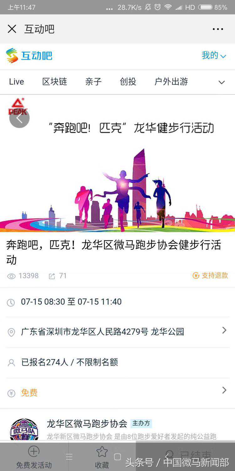 2018年7月14日和龙华区微马协会的伙伴们一起参加“匹克”健步5公里的活动
