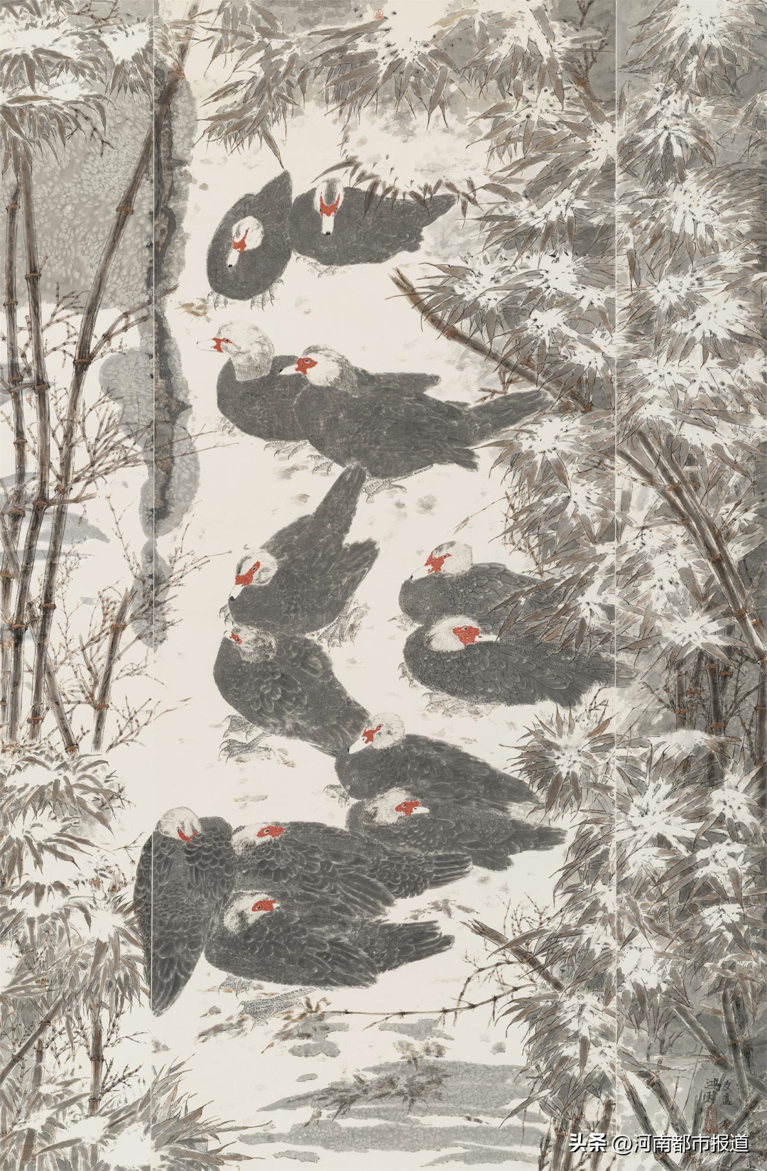 作为河南省国画创作的重要阵地,河南省书画院此次有近10件作品参展,据河南省美术家协会副主席、河南省书画院院长李明介绍,作为河南美术的专业团队,我们的国画家们在深挖中原传统精髓的同时,不忘深入生活,扎根人民。他们始终把自己的艺术创作植根于中原深厚的文化沃土中,从黄河、黄土、太行山、大别山中汲取天地之灵气,接受万物之滋养,从而培养出厚重、博大、中正、质朴的中原气象。这种渐次形成的创作传统,也在不断引导着河南美术创作的风气和核心价值取向。