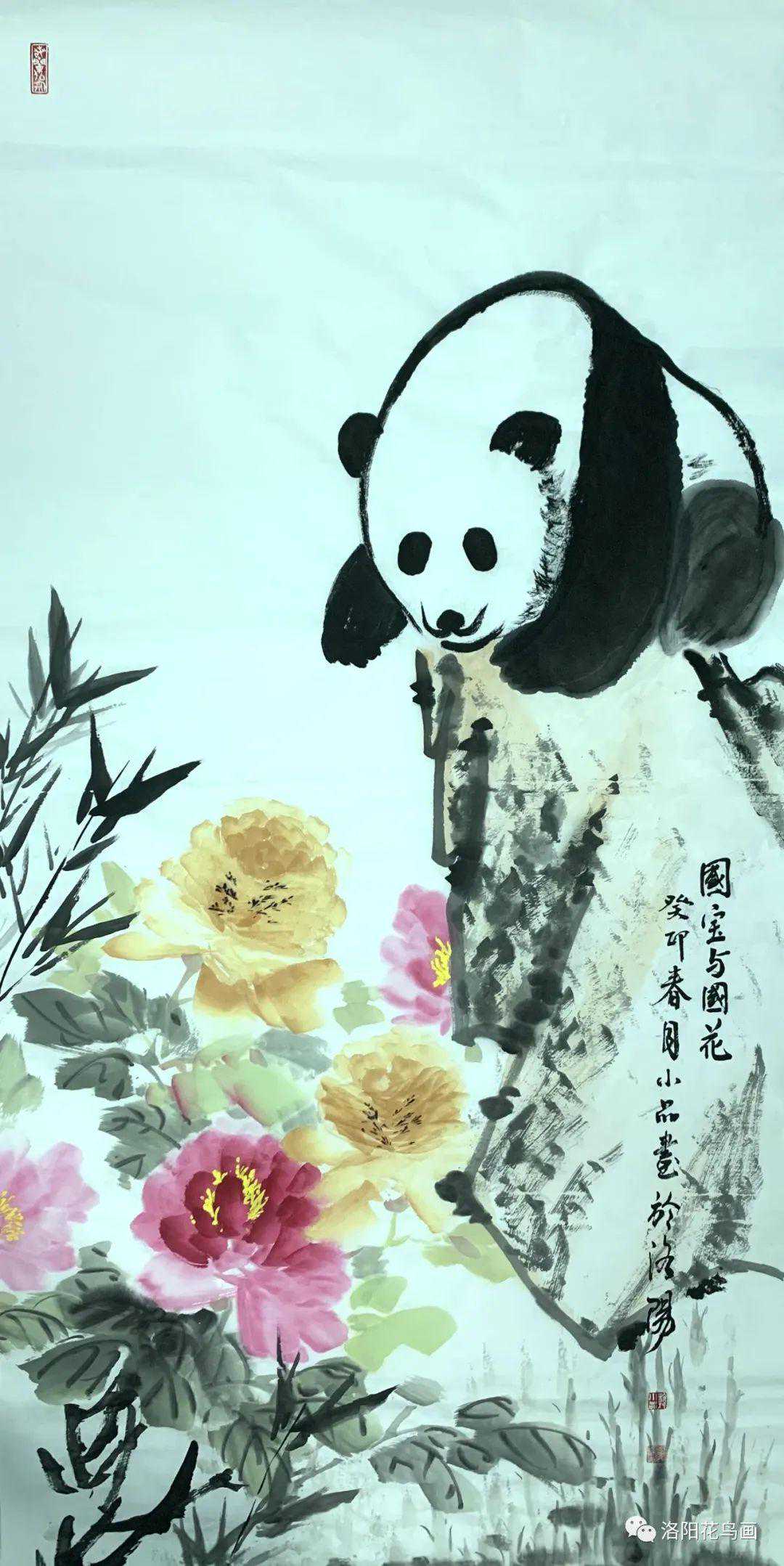 《国宝与国花》韩小品136x68cm