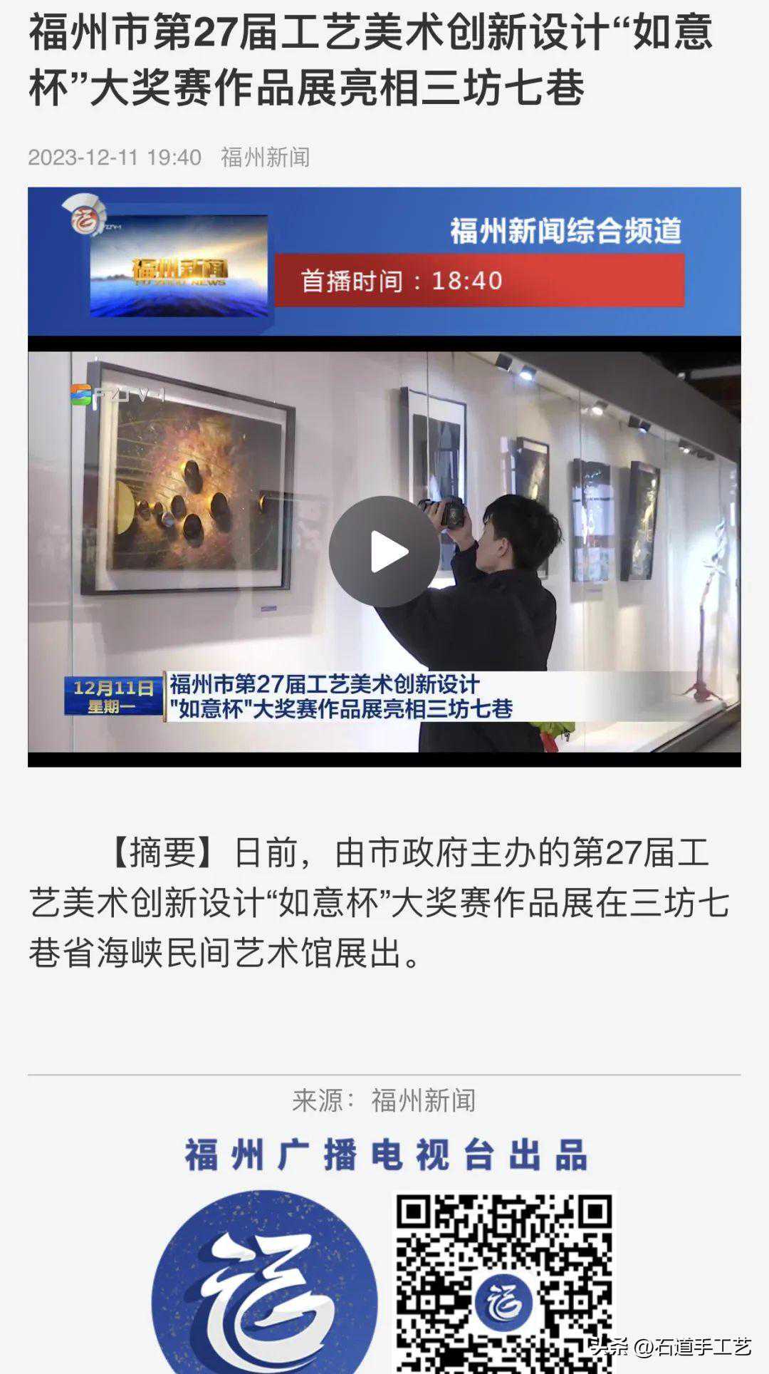 11月27日上午,福州市第27届工艺美术创新设计“如意杯”大奖赛在福州祥杰智慧产业园开幕,各级领导、工艺美术界知名人士、参赛者、参评者及新闻媒体朋友等出席了开幕式。