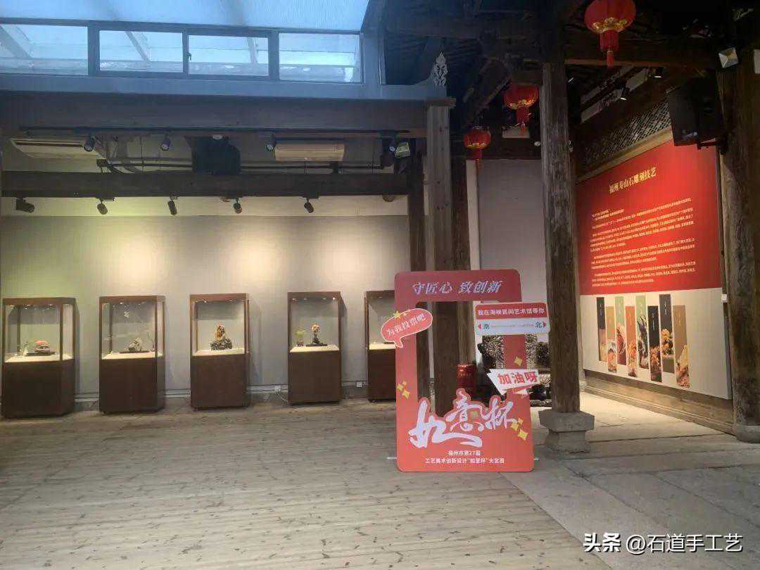 本届“如意杯”大奖赛作品展场地首次横跨福建省海峡民间艺术馆第一、第二展厅,展览按照福州传统工艺美术三大门类进行分区展示,分别为寿山石雕区、木雕及软木画区、漆艺区。