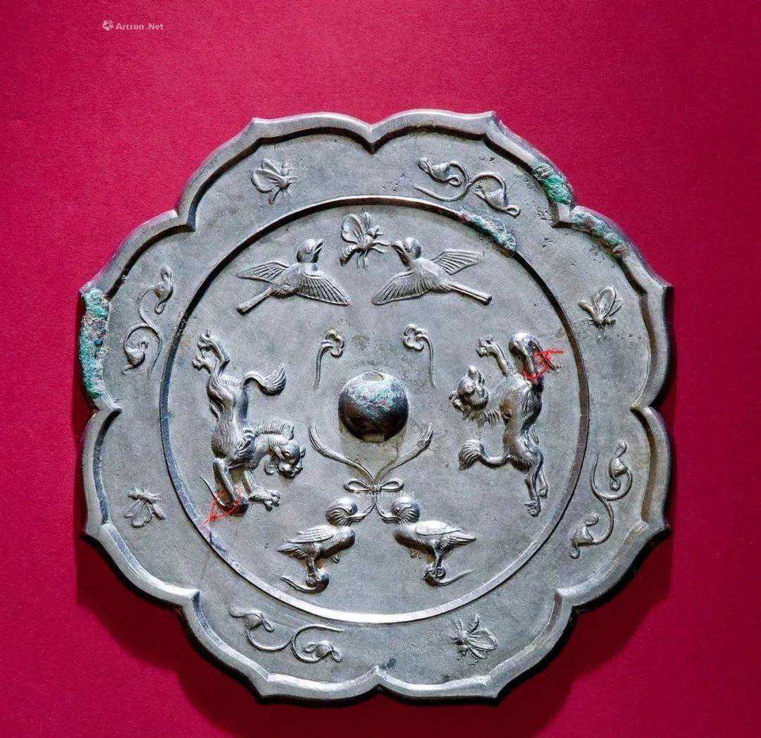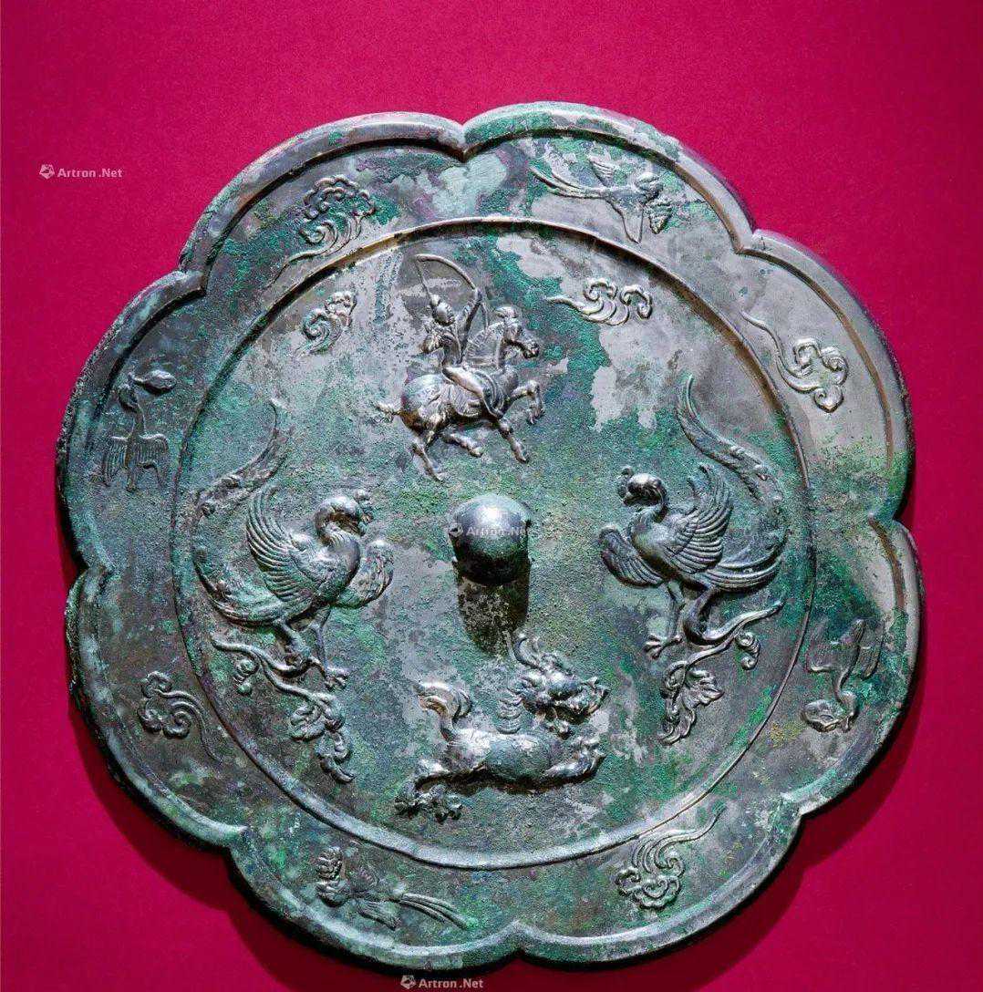唐人喜狩猎,得力于统治者的提倡,《资治通鉴唐纪十一》卷一九五记,唐贞观十一年(637年)太宗说:“上封事者皆言联游猎太频,今天下无事,武备不可忘。”《唐会要狩》中曾有记载:“贞观五年正月十三日,大狩于昆明池,藩夷君长咸从。上谓高昌王曲又泰曰:大丈夫在世,乐事有三。天下太平,家给人足,一乐也。草浅兽肥,以礼畋狩,弓不虚发,箭不妄中,二乐也。六合大同,万方咸庆,张乐高宴,上下欢洽,三乐也。”唐代宫廷和高官显贵以狩猎为乐事,杜甫《哀江头》:“昭阳殿里第一人,同辇随君待君侧。辇前才人带弓箭,白马嚼齿黄金勒。翻身向天仰射云,一箭正坠双飞翼。”同时,唐代的狩猎也是上层社会的娱乐兼武备,李白《行行游且猎篇》:“半酣呼鹰出远郊,弓弯满月不虚发。”唐代铜镜的制作工艺极为精美,在造型与装饰方面具有时代的变化,图案装饰生动活泼,布局灵活多变.各色花式的造型以及明快清秀的构图,迎来了中国铜镜发展的第三次高潮。