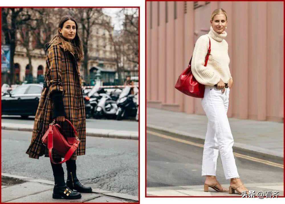 红色挎包喜气不突兀,瞬间点亮沉闷着装。