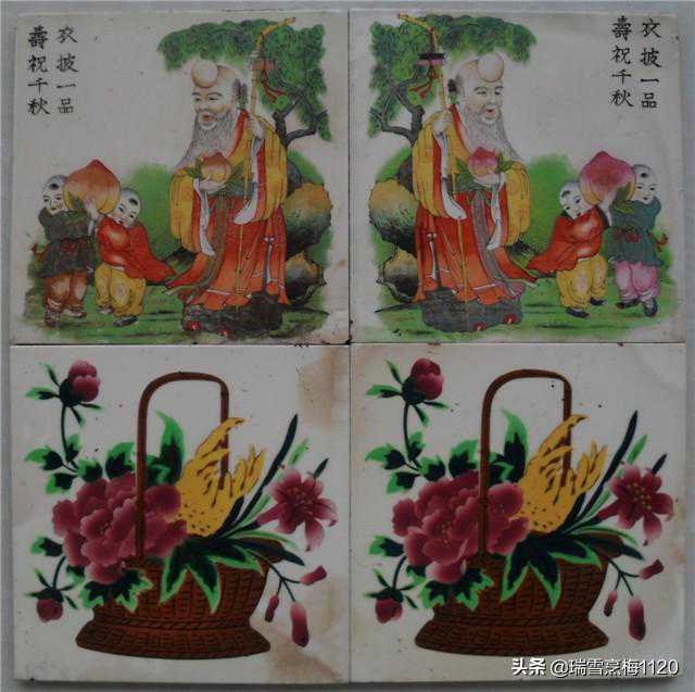 还有一种柜门中间镶瓷砖的炕琴柜,多见于民国伪满以后。下面介绍一组伪满时期的瓷砖。