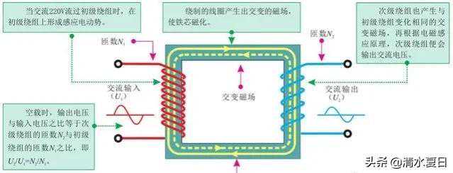 变压器就是一种利用电磁互感效应,变换电压、电流和阻抗的器件。通过给初级线圈通电,使变压器中铁芯产生交变磁场,然后让次级线圈产生感应电动势,从而实现电压的变化。