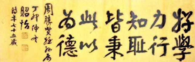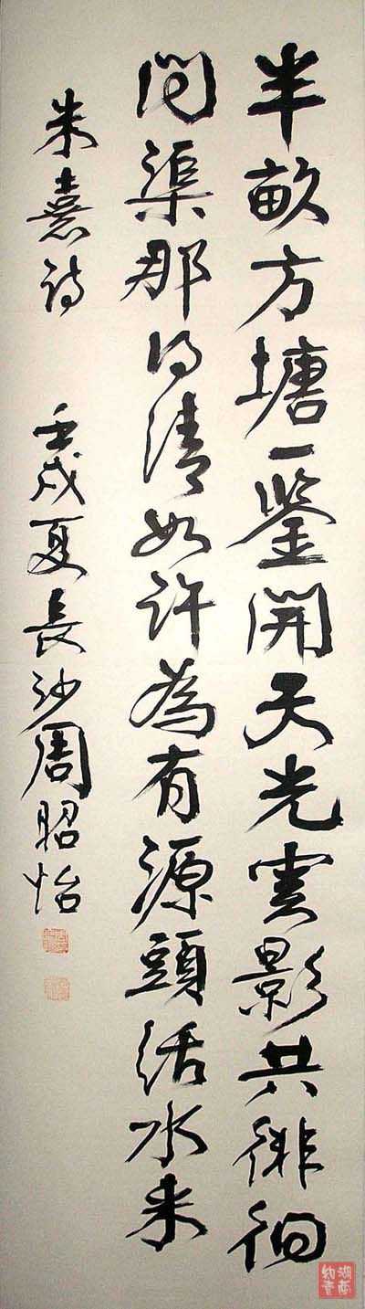 周昭怡(1912.11.2-1989.4.21)女,书法家。湖南长沙人。1936年湖南大学毕业。曾任湖南省政府秘书处科员,省立工业专科学校讲师,长沙周南女校校长。1951年起历任长沙艺芳女中、市三女中、市第十四中学校长。