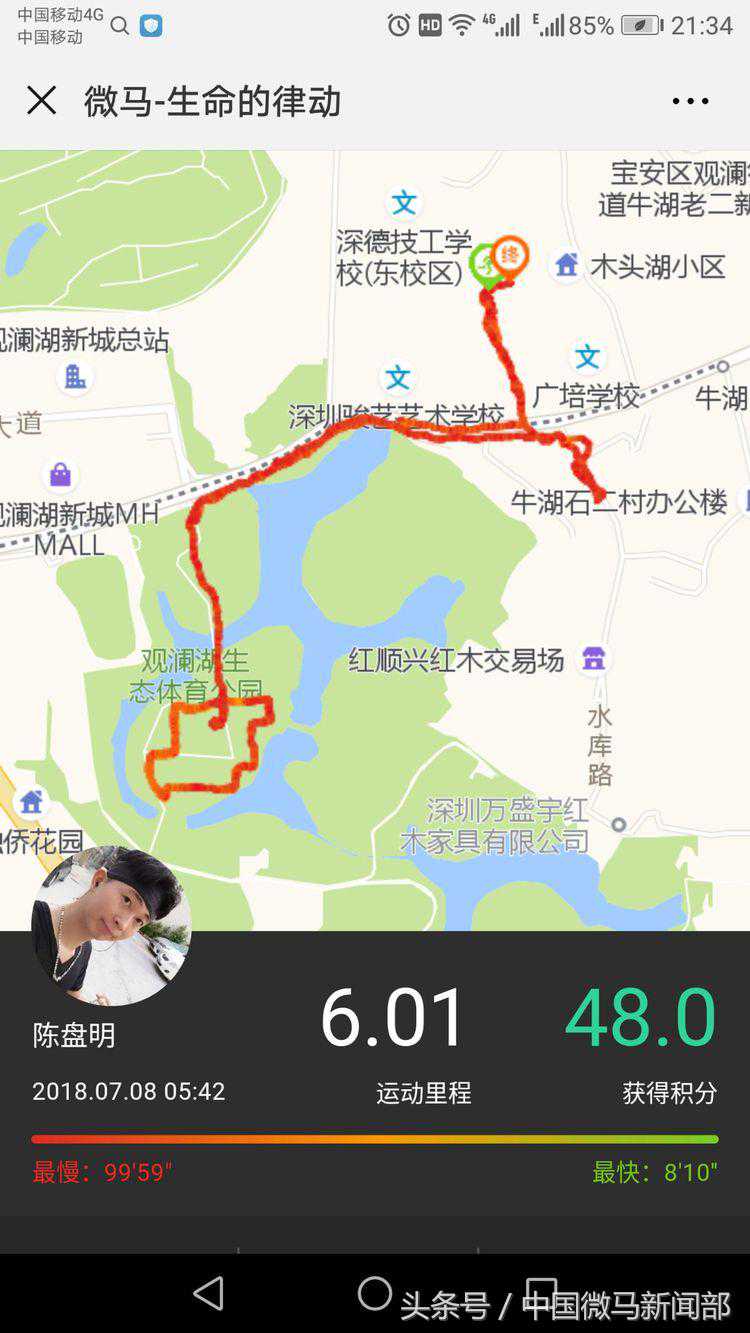 每周例跑贵在坚持,每一份坚持都是成功的累积,只要相信自己,总会遇到惊喜,加油吧陈盘明,牛湖微马队有你就更精彩!