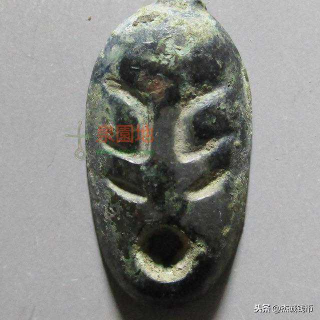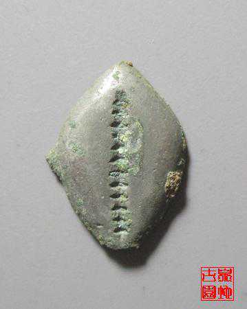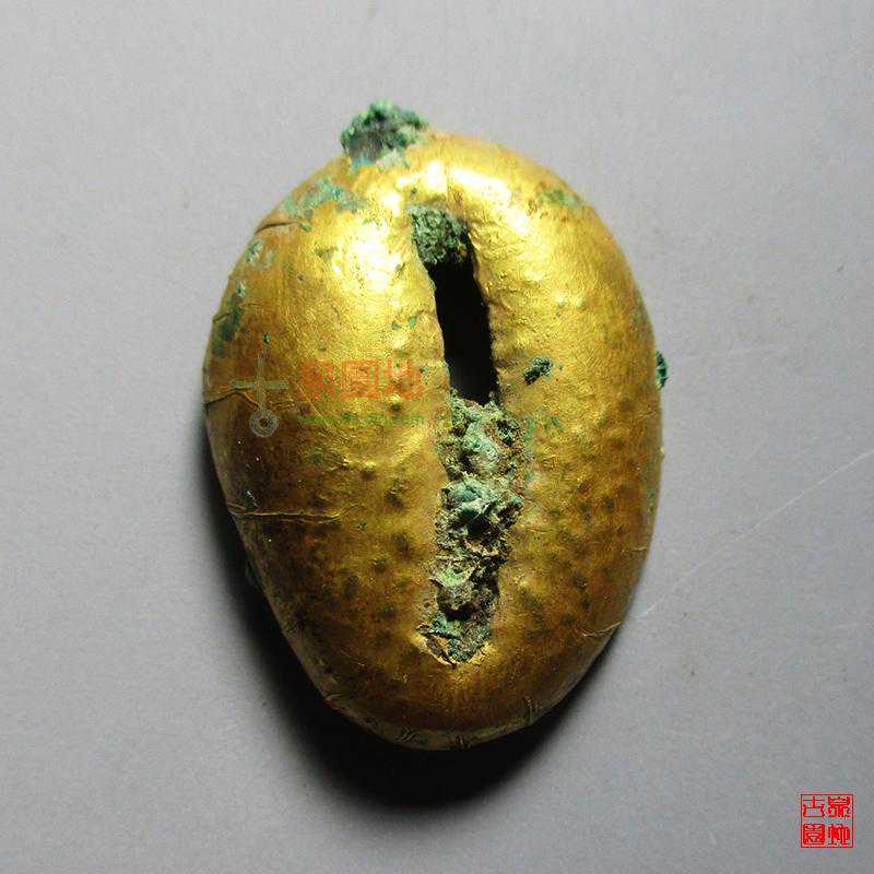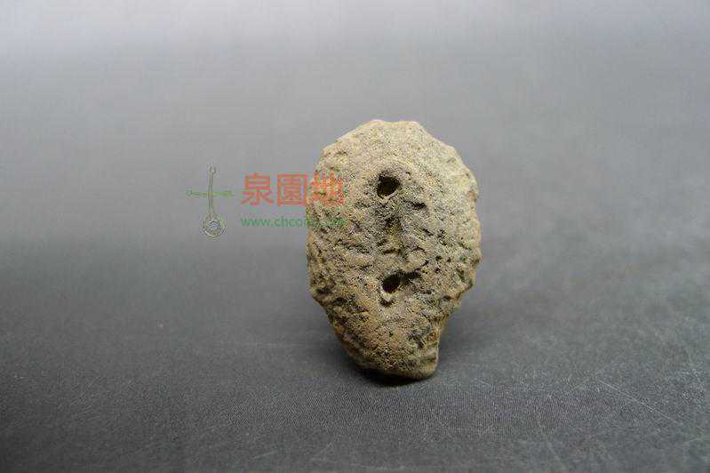 战国——蚁鼻钱(鬼脸钱)铸地楚,币质青铜,贝形,凸面平背,一端有孔,钱面铸阴文。