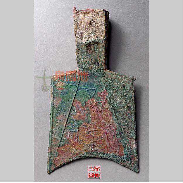 战国中后期——锐角布铸地韩魏,币质青铜,首部两端呈锐角,平肩方足。