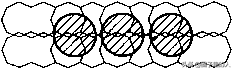 (a)间隔排列;(b)一字形相切排列;(c)交错相切排列;