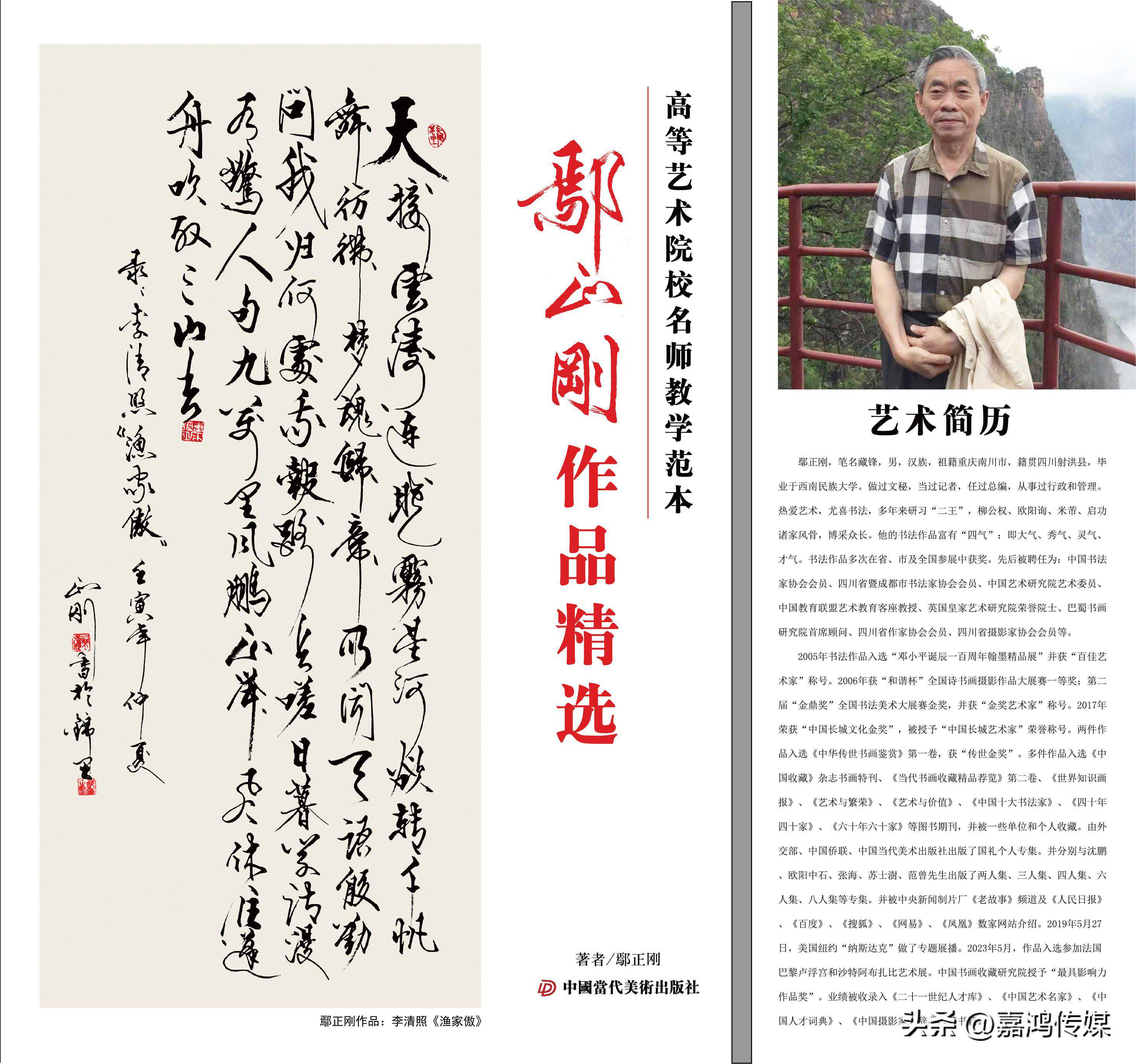 近日《高等艺术院校名师教学范本》鄢正刚作品精选由中国当代美术出版社出版,精装八开册页,该画册收录鄢正刚老师近年精选作品20多幅,其中许多作品入选参加国内外大展并获奖,被收编进数十部大型书画典籍,并被多家单位和个人收藏。该书的出版将会有力推动我国美育研究和实践的发展,这将是一本对中国艺术教育的发展作真实的记载和客观呈现的系列教材丛书。引导青年文艺工作者守正道、走大道,鼓励他们多创新、出精品,支持他们挑大梁、当主角,让当代中国艺术家像泉水一样奔涌而出,让中国文艺的天空更加群星灿烂。