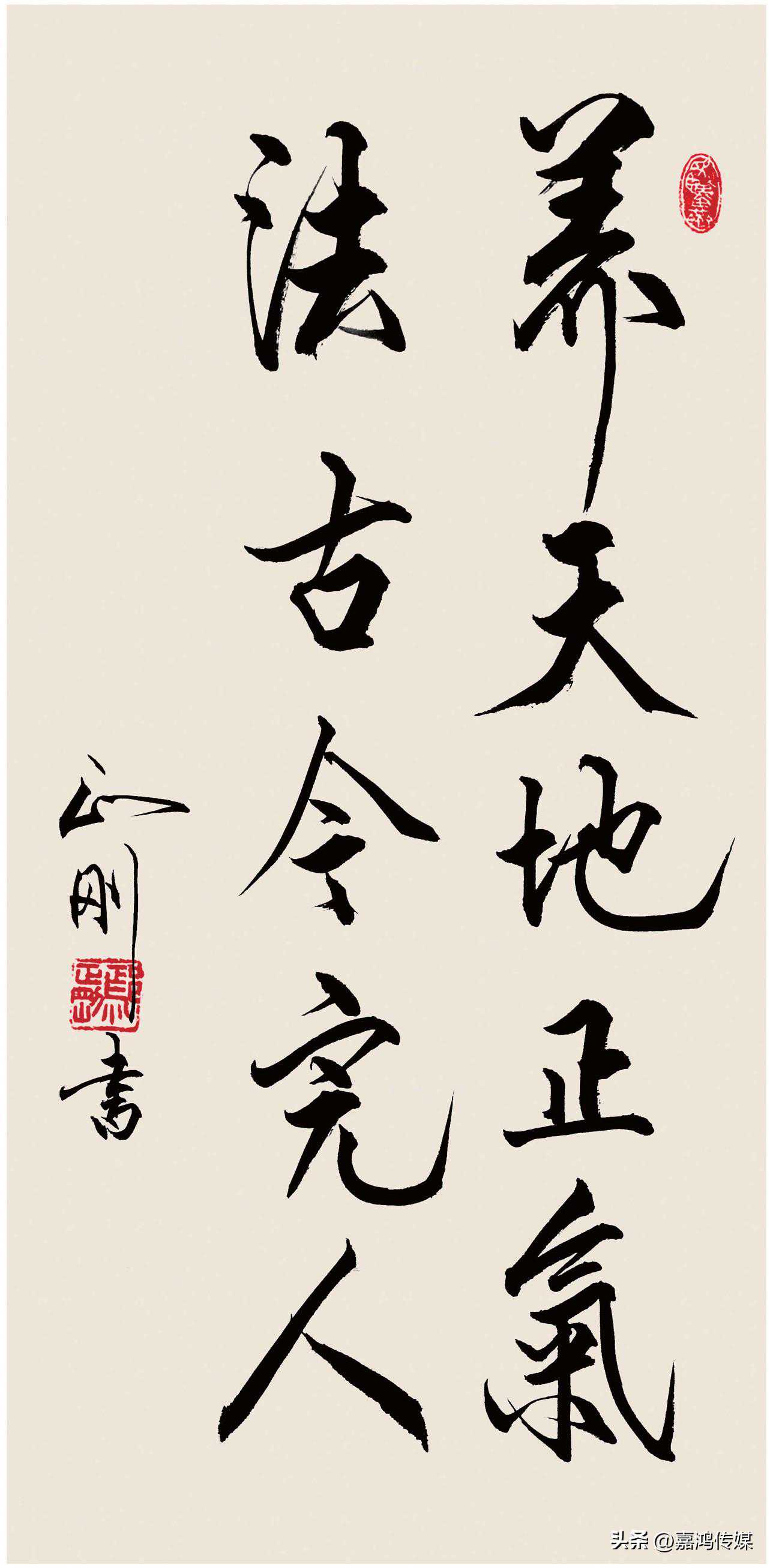 鄢正刚同志的书法作品兼习“二王”、米芾,崇尚飘逸俊朗的书体,主张抽象与写实并存,以大众需求和中国传统审美情趣为出发点。他的书法作品富有“四气”,即大气、秀气、灵气、才气。所谓“大气”,是指其作品的宏观布局大气磅礴。观看他的每幅成功书作特别是行草作品,总会被那烟云浮动、波涛汹涌、烈马驰骋、风雨飒飒、惊雷阵阵的恢宏气势和动感所吸引、所震撼!他的书法很注重也很擅长宏观布局,十分讲究字体的大小错落、行距的疏密张弛、墨色的浓淡枯润、布局的层次起伏、行笔的流畅严谨、章法的新颖韵味。人们读他的作品,第一个印象就是大气脱俗,颇具个性。