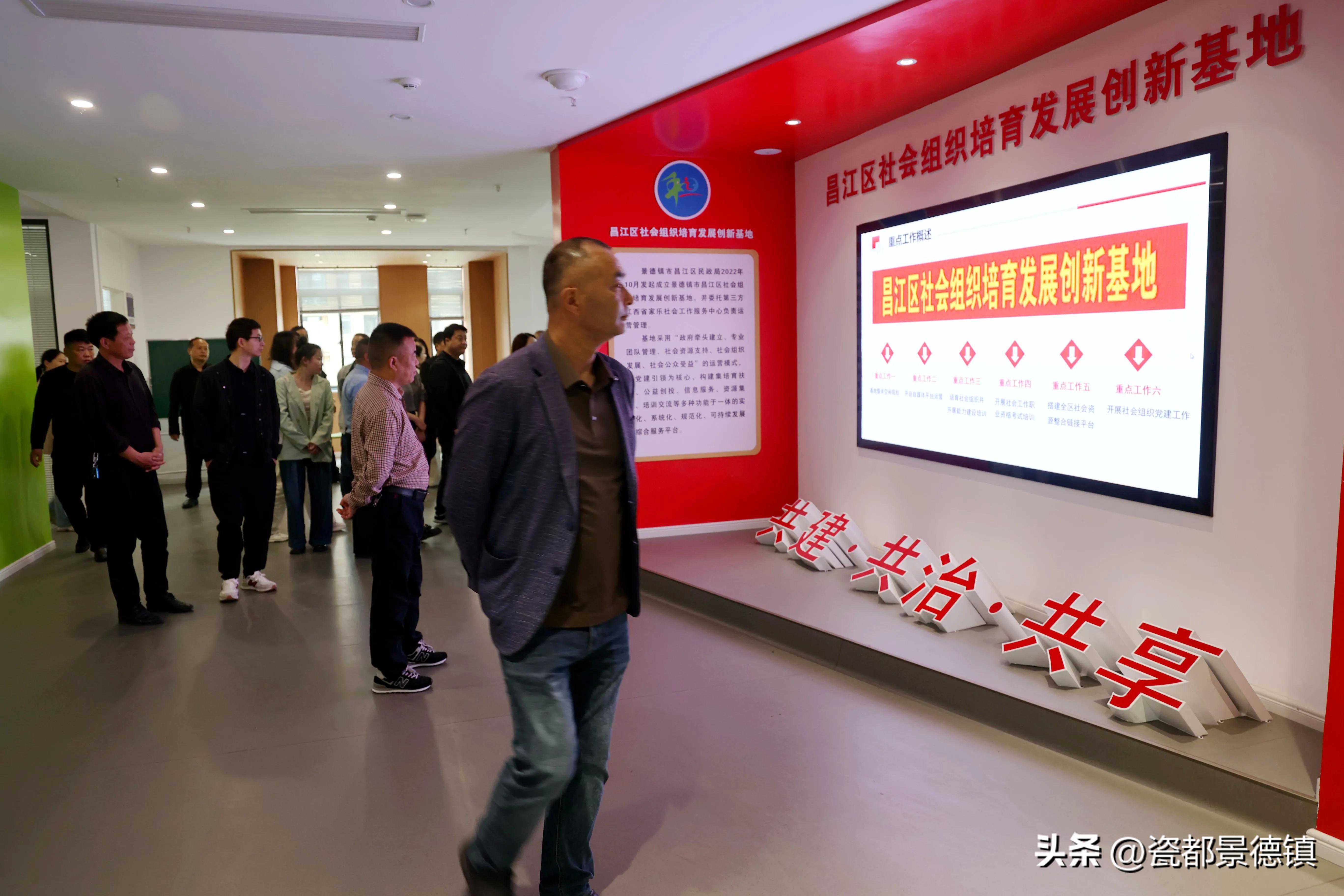 4月23日,浮梁县村(社区)两委干部“百人团”来到景德镇市昌江区嘉和社区参观学习城市党建综合体,昌江区区委组织部组织二科万世强陪同。