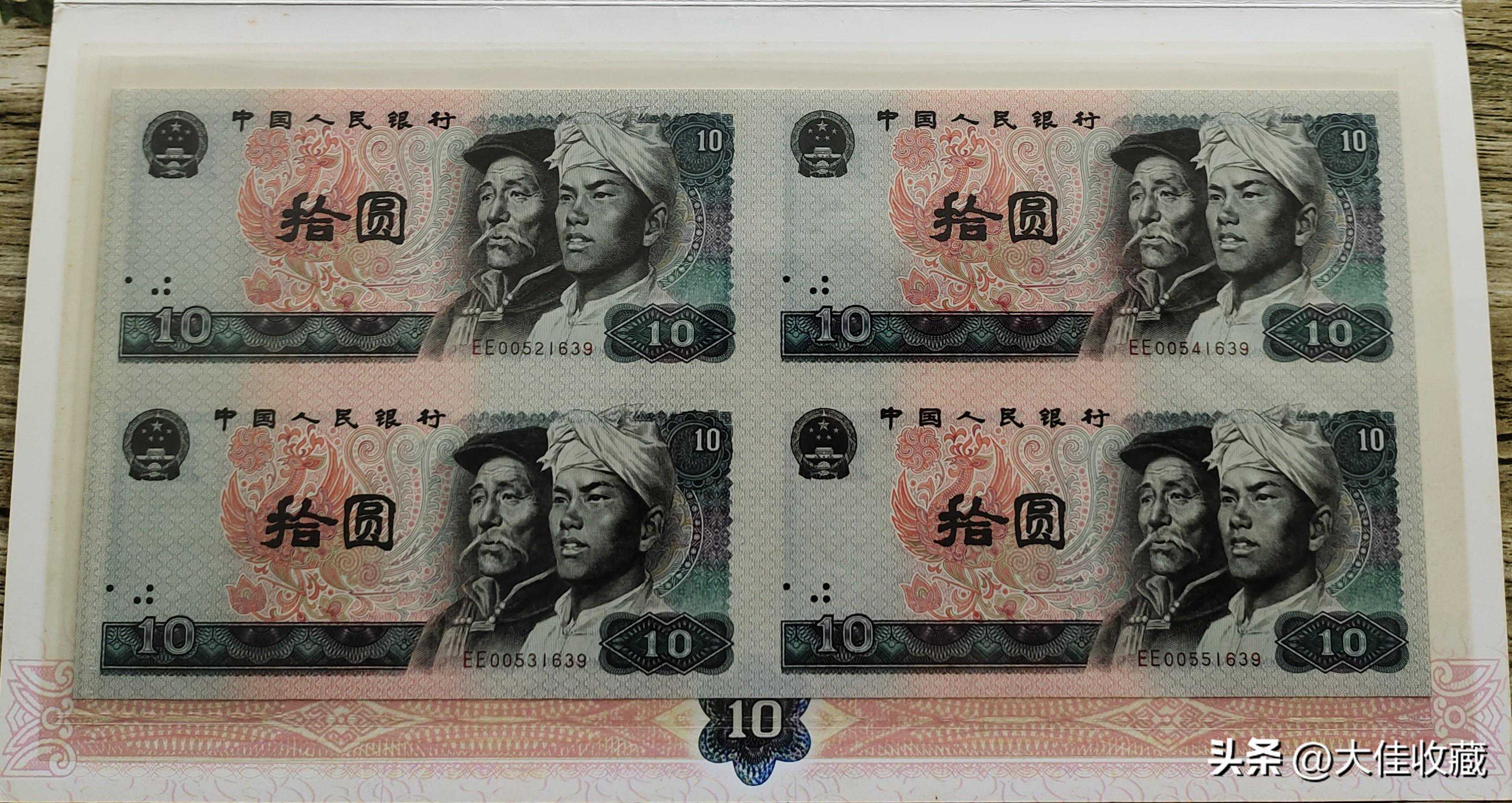 纸币的收藏有多种多样,版别和品种也非常之多,这里面有一种较为特殊的品种叫做:连体钞;就是由两张或以上的纸钞连在一起,没有裁剪;有两连体、四连体、八连体等等。
