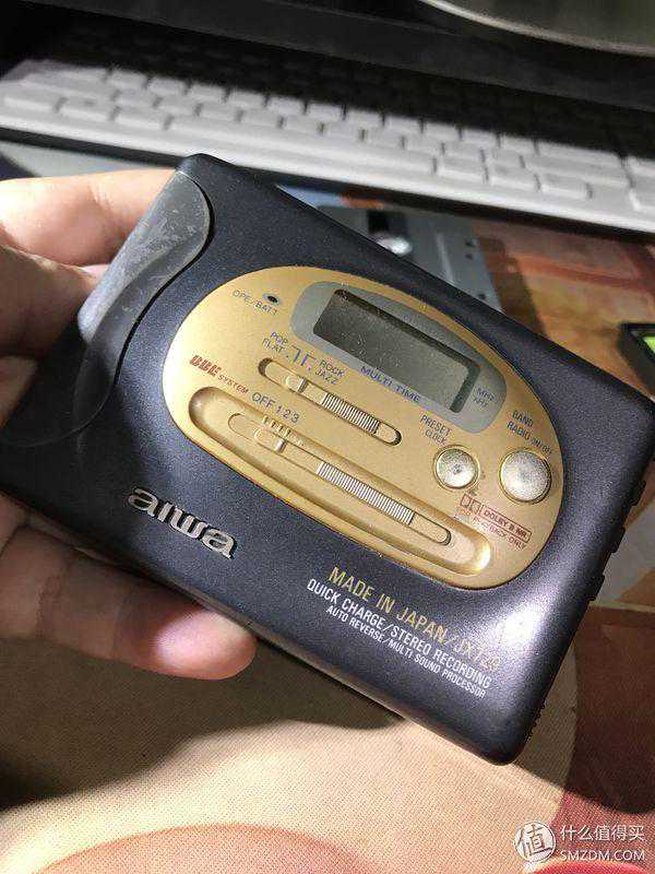 这是爱华JX729,也是打理过的,当时10块买的,可是现在也放坏了,磁带能动,但是屏幕无显示,带一个7号电池盒