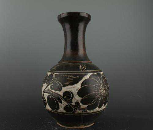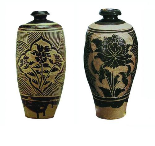 主要是通过釉色和胎色形成的颜色反差和高低落差,来反衬图案主题和色调,其装饰性很强。刻釉和剔釉一般多用于褐釉和黑釉瓷器的装饰上,尤其是经瓶一类器型较大的高档瓷器上较为常见。