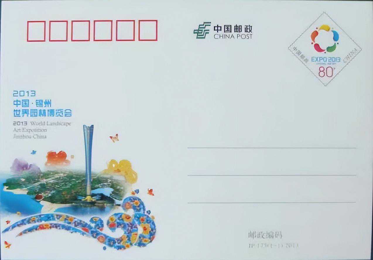本届世园会以“城市与海和谐未来”为主题,突出海洋特色,彰显海洋文化,宣传海洋文明。为祝贺本届世园会胜利召开,国家邮政局于5月10日发行志号为JP173《2013中国锦州世界园林博览会》纪念邮资明信片一套一枚,设计者:沈嘉宏、陈志皓,北京邮票厂胶版印刷。