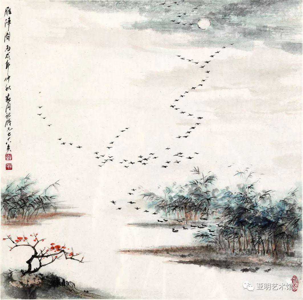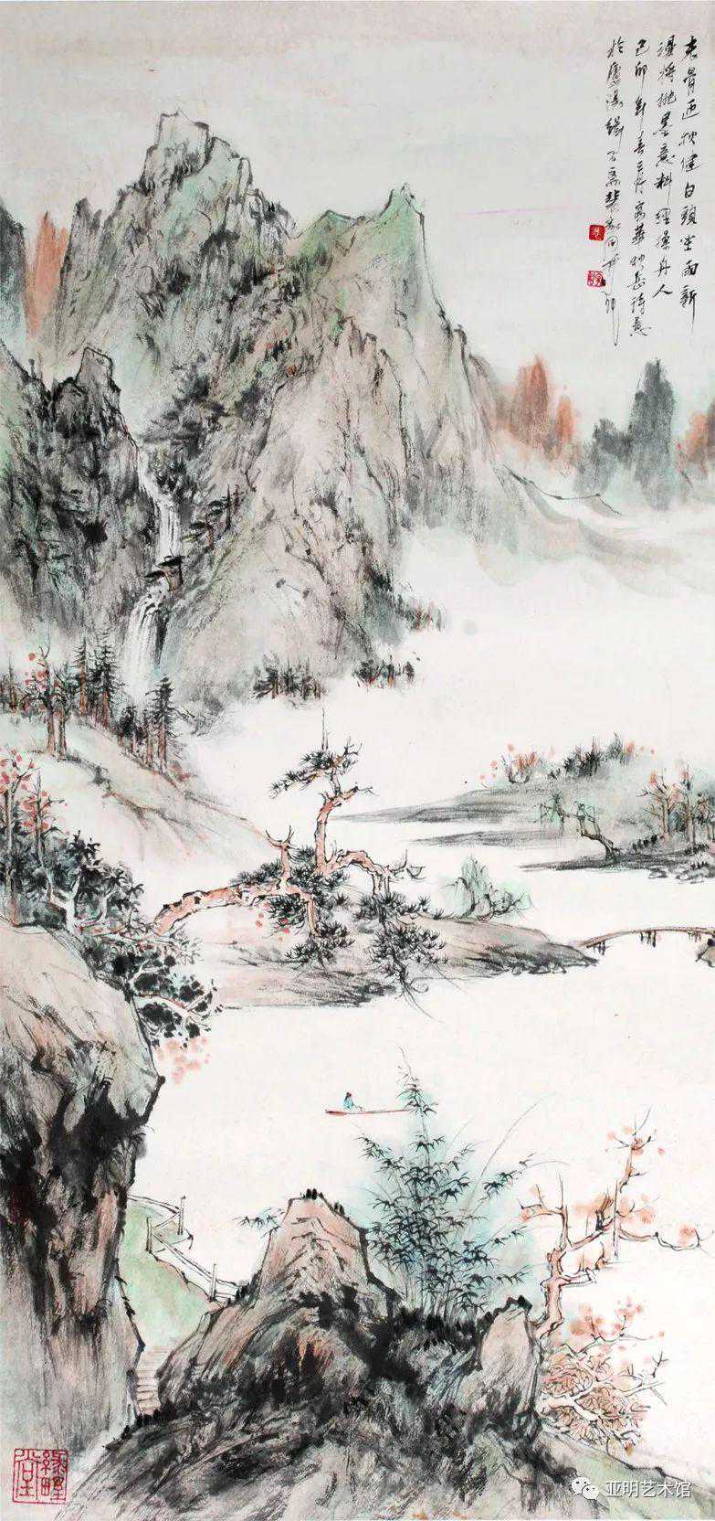 再次,裴家同终生注重学养,追求诗书画并胜,最终臻于“随心所欲不逾矩”的“写意”境界。他绘画修养全面,精山水,工花鸟,能人物,还擅长书法,精通诗赋。他书法造诣很深,其线条质量不凡,刚柔相济,极富节奏韵律;其笔法变化多姿,中锋、侧锋、散锋等运用自如;其意境古雅清逸,独立书法作品超凡脱俗,画上题跋也很精彩。尤其是以书入画,以书“写画”,以书“写意”,画面的疏密、虚实、节奏与乐感得到彰显强化。他古诗词修养颇深,常以古人诗意引发山水情思,以山水画艺开掘诗情诗意,化景物为情思,化情思为诗意,或援引古诗以彰画意,或自题诗句以抒胸臆,“诗中有画,画中有诗”表现得非常充分。正是这种比较纯粹的书法的“抒写性”和诗的“抒情性”,使其山水画成为真正的“写意画”。