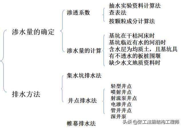 排水方法:集水排水、井点法降水、帷幕法排水