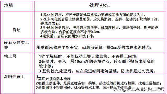 ⑥应避免超挖。如超挖,应将松动部分清除。机械开挖,应保留10cm—20cm厚底层,在浇筑前用人工挖至设计标高。