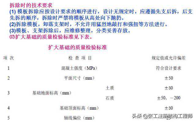 ⑧基础的轴线、边线位置及基底标高应精确测定,检查无误后方可施工。