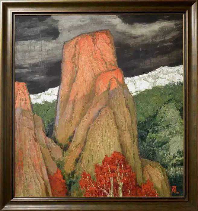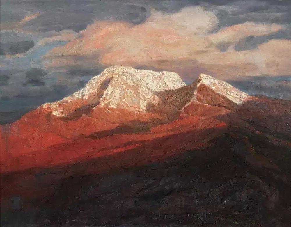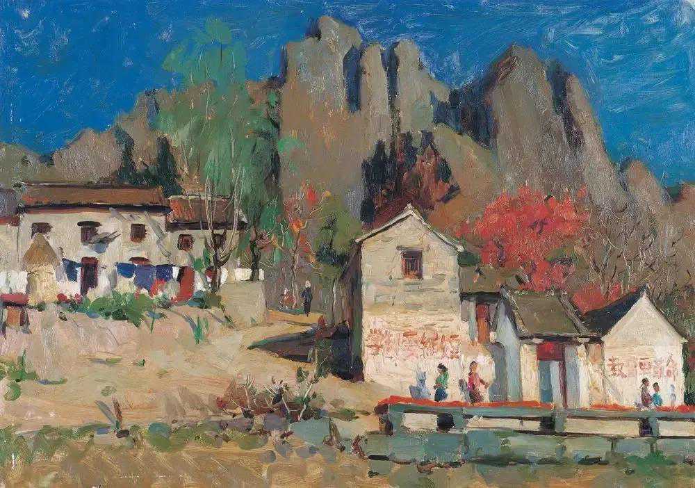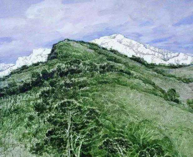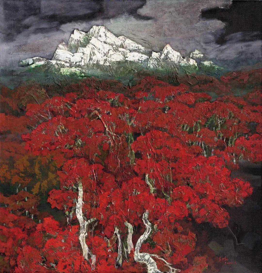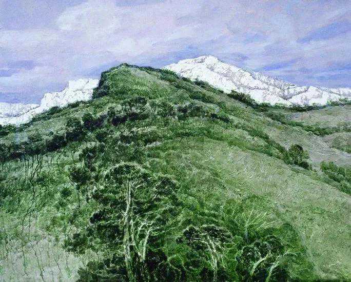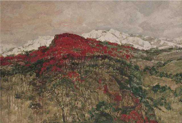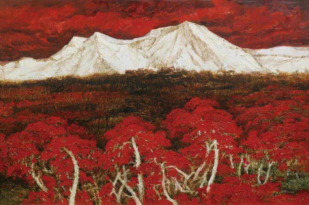 这位少年便是闻一多先生的儿子,我国著名油画家闻立鹏。往后的几十年,随着心性的成熟,闻立鹏开始回顾父亲的一生,对其父辈革命烈士的崇敬与怀念之情让他的艺术有一种鲜明的“红”,永远追求真善美。他一生都在用绘画来回应父辈的理想。面对祖国的大好河山,这片曾笼罩在战争阴影下的山河如今在他的画面中静默着,有一种感人至深的无言的力量。