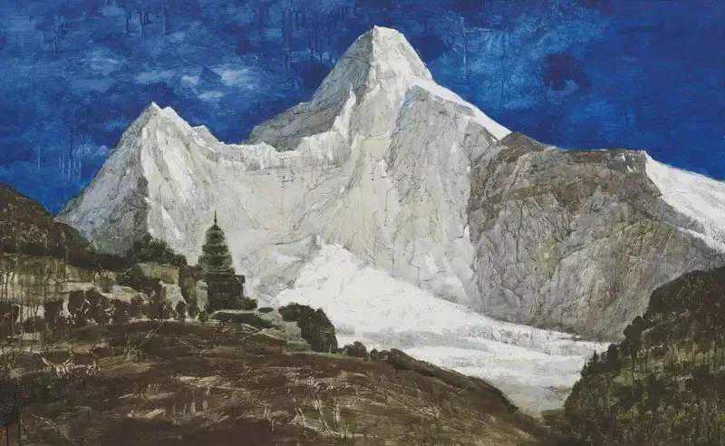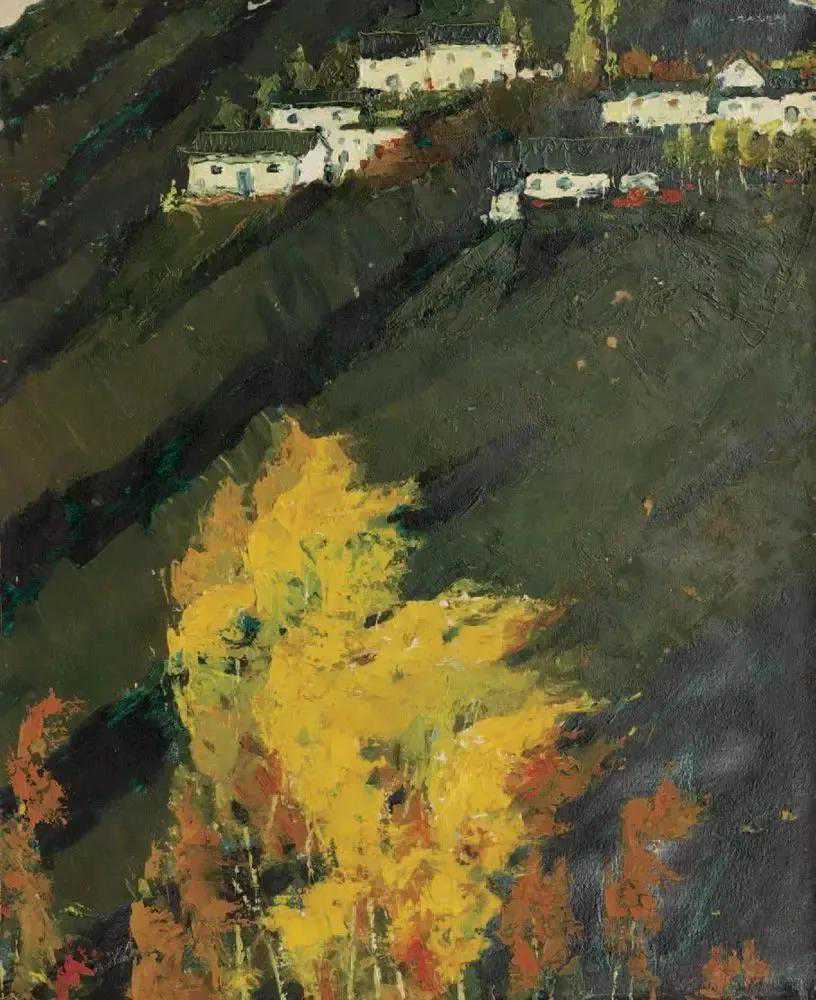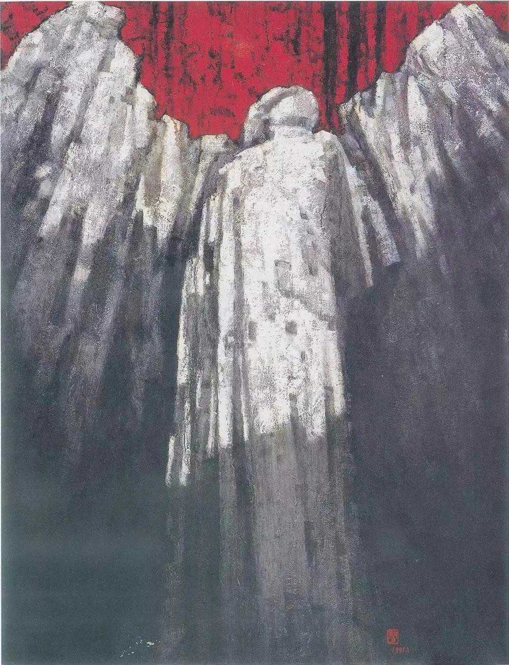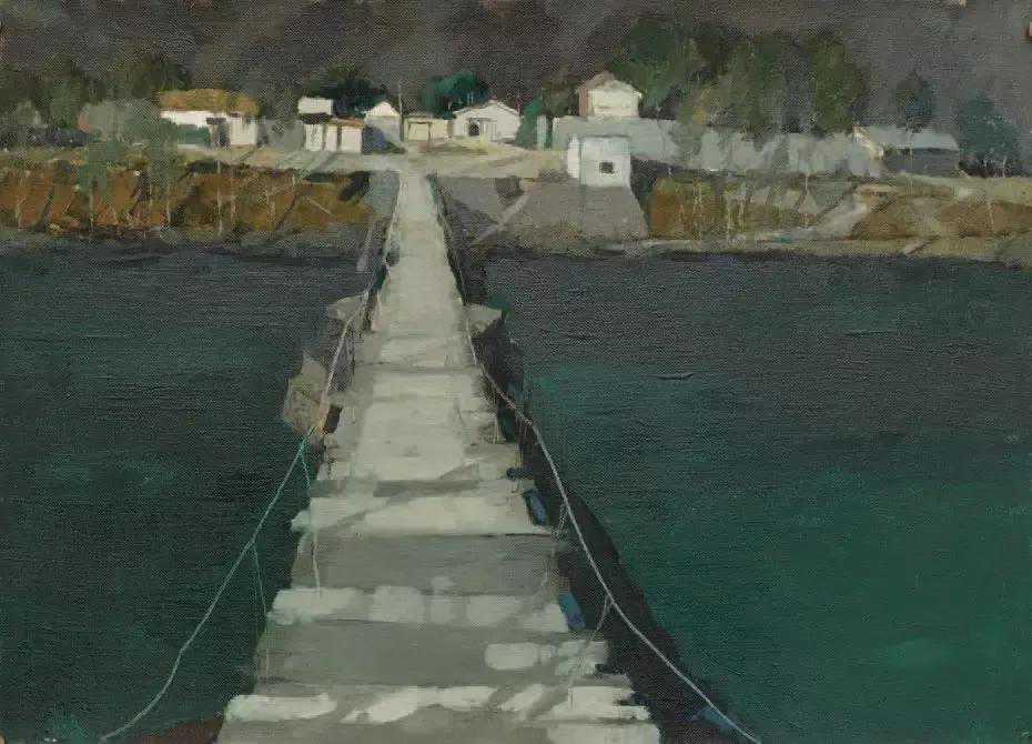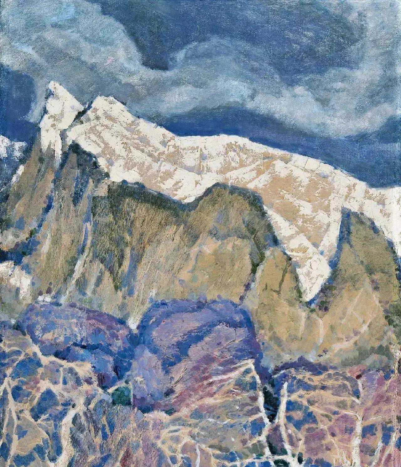 这位少年便是闻一多先生的儿子,我国著名油画家闻立鹏。往后的几十年,随着心性的成熟,闻立鹏开始回顾父亲的一生,对其父辈革命烈士的崇敬与怀念之情让他的艺术有一种鲜明的“红”,永远追求真善美。他一生都在用绘画来回应父辈的理想。面对祖国的大好河山,这片曾笼罩在战争阴影下的山河如今在他的画面中静默着,有一种感人至深的无言的力量。