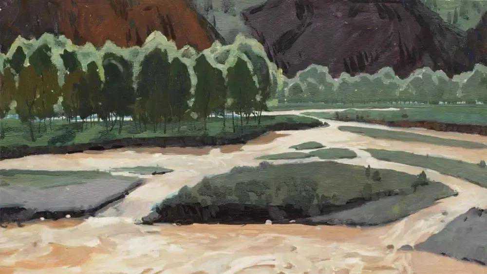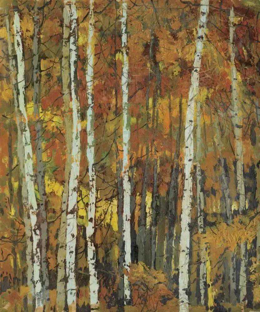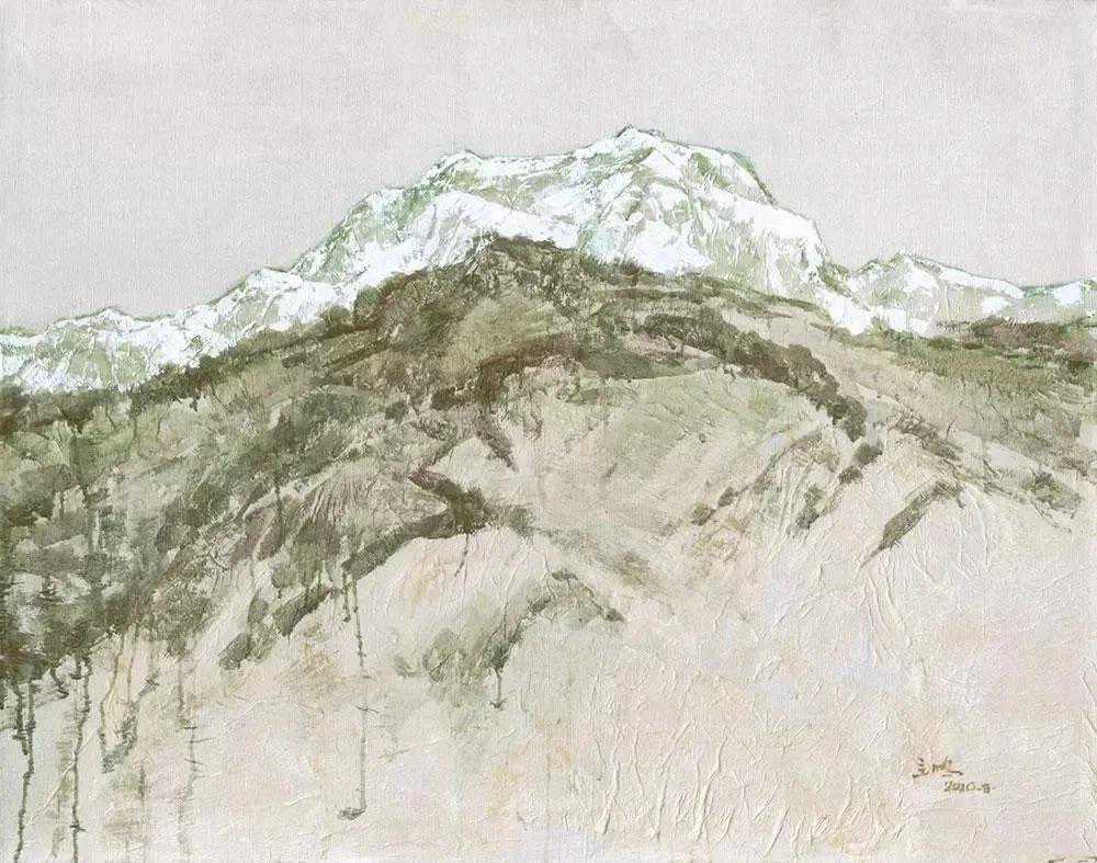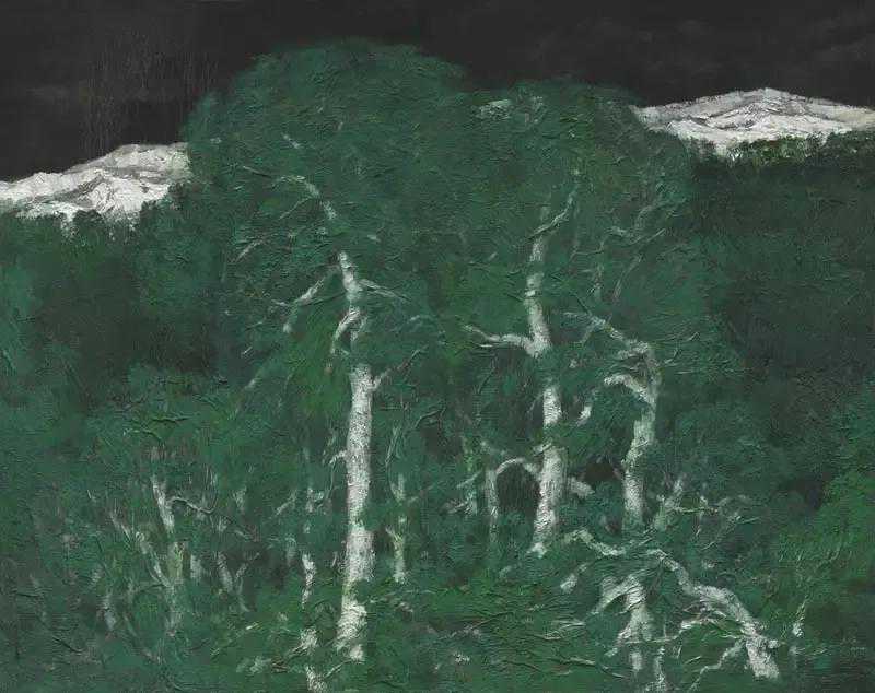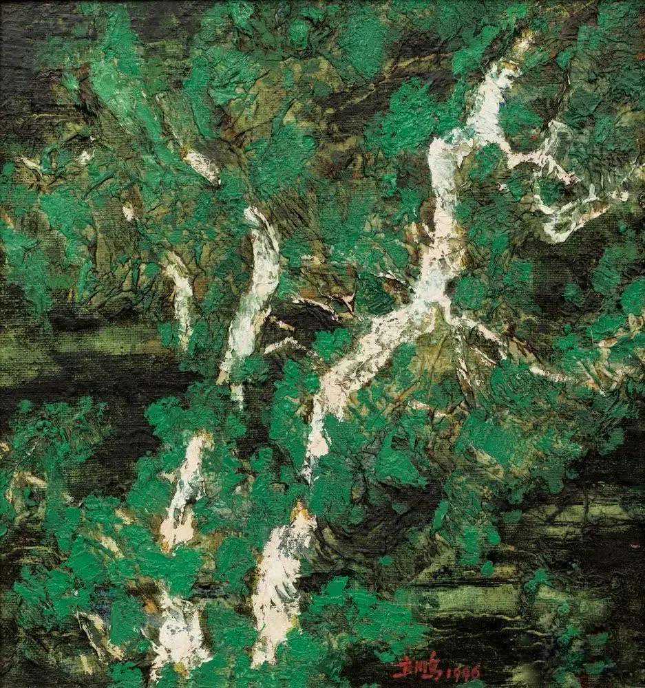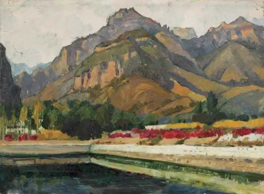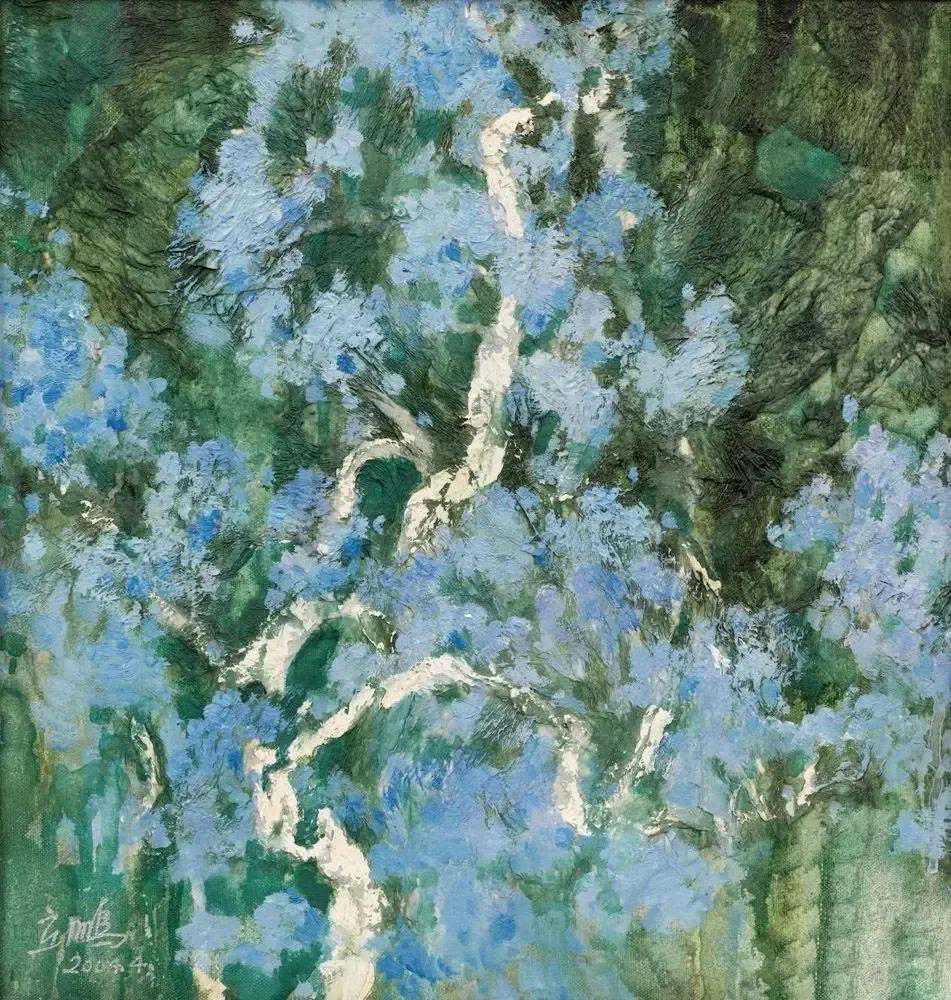 这位少年便是闻一多先生的儿子,我国著名油画家闻立鹏。往后的几十年,随着心性的成熟,闻立鹏开始回顾父亲的一生,对其父辈革命烈士的崇敬与怀念之情让他的艺术有一种鲜明的“红”,永远追求真善美。他一生都在用绘画来回应父辈的理想。面对祖国的大好河山,这片曾笼罩在战争阴影下的山河如今在他的画面中静默着,有一种感人至深的无言的力量。