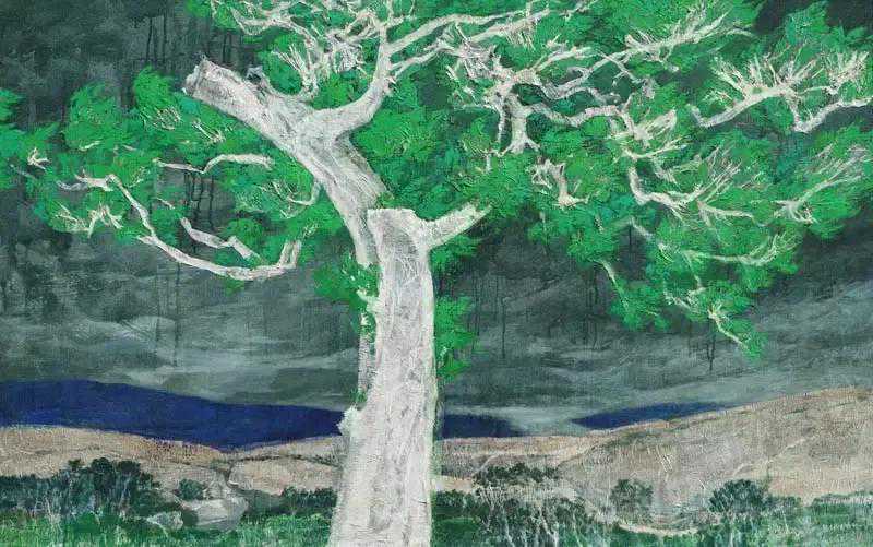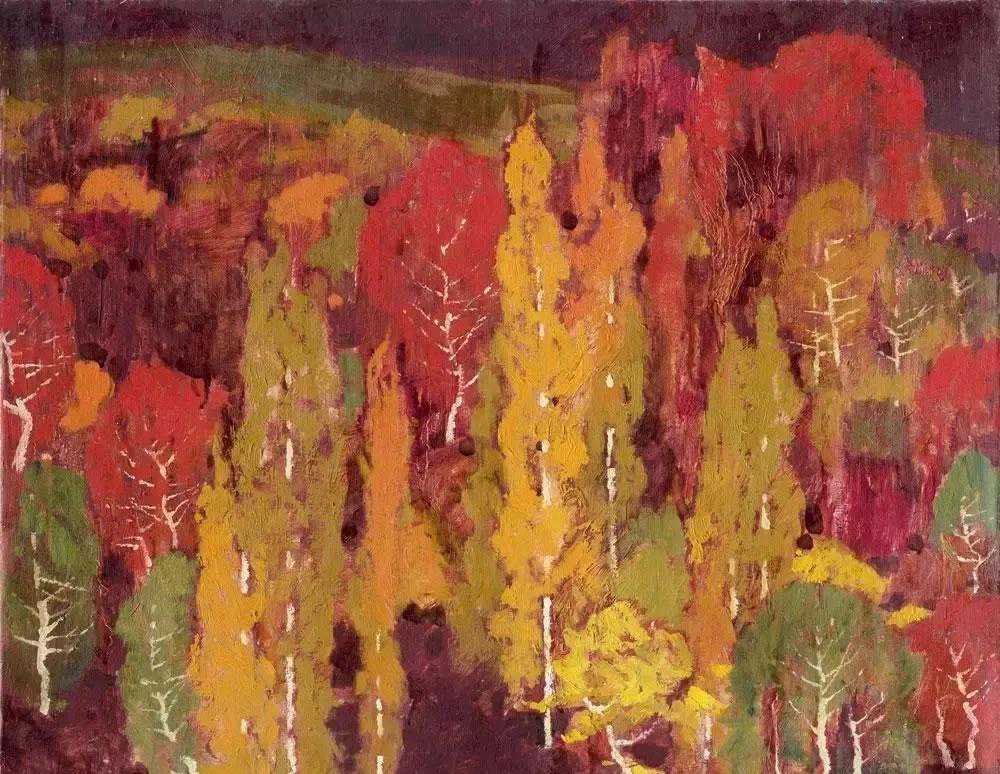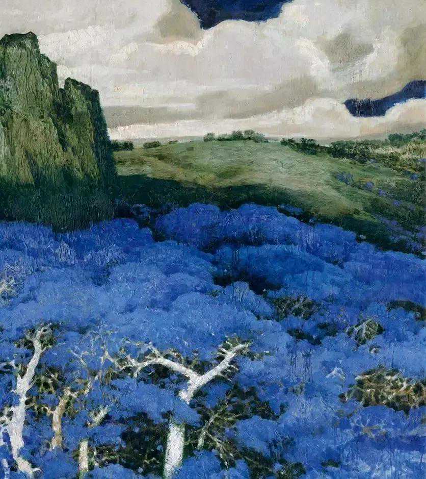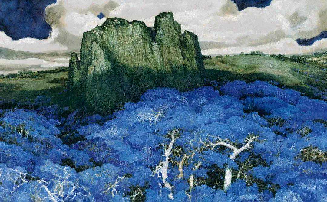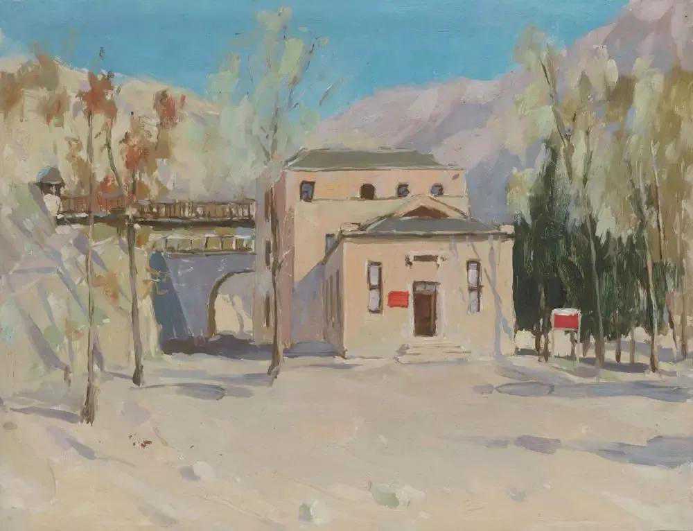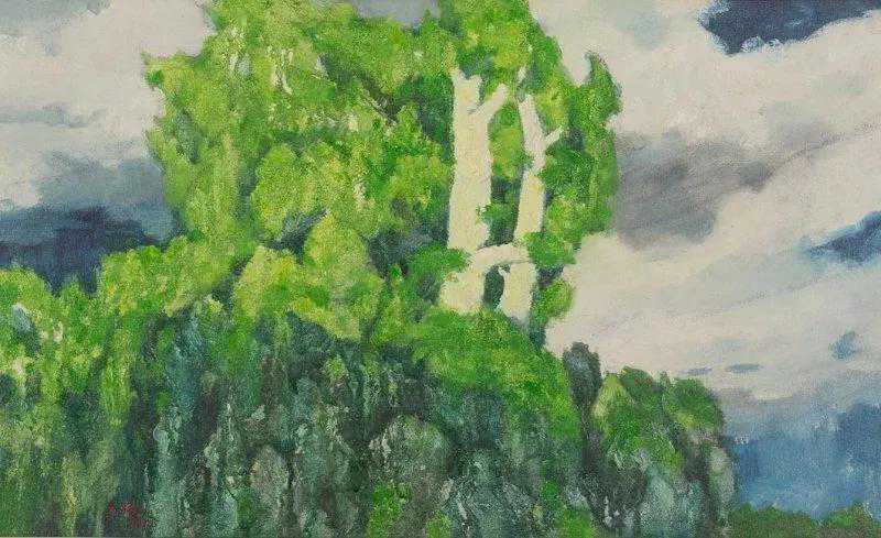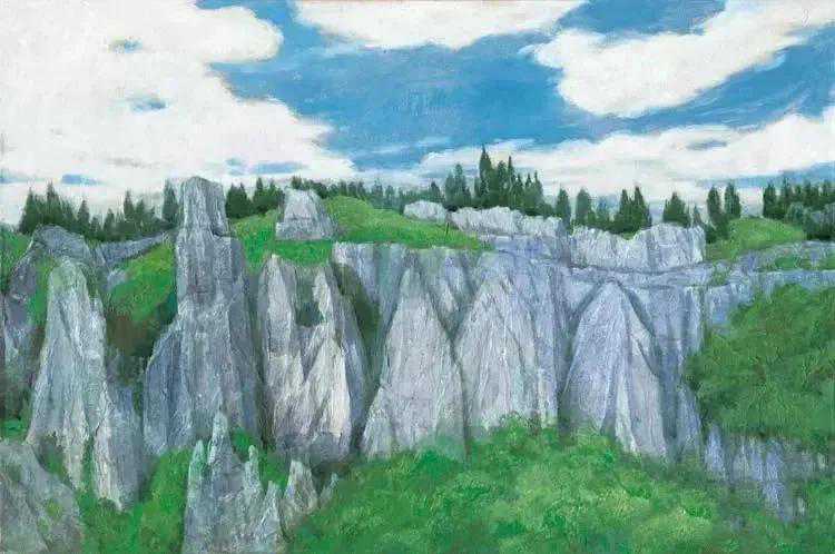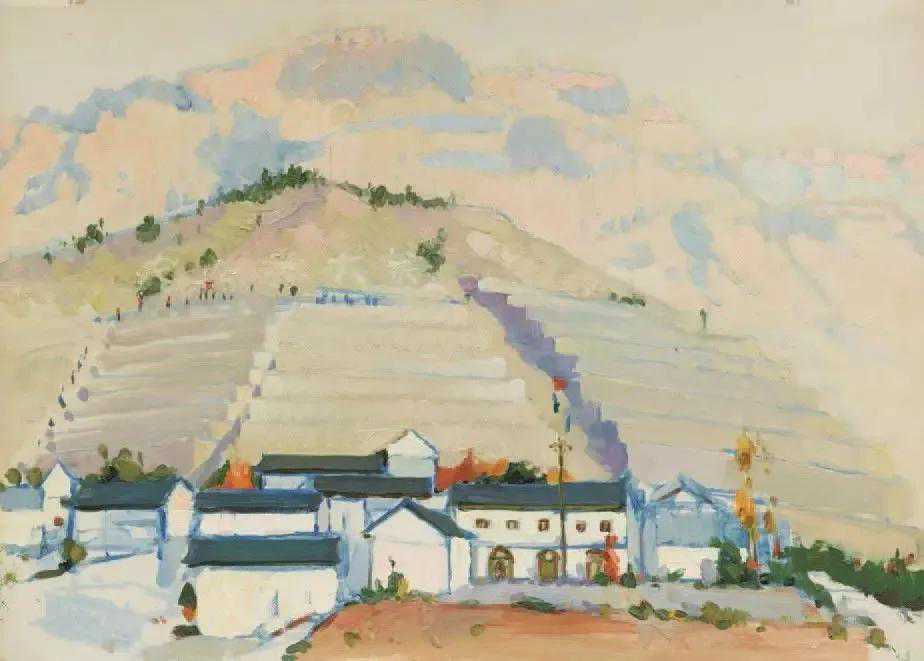 这位少年便是闻一多先生的儿子,我国著名油画家闻立鹏。往后的几十年,随着心性的成熟,闻立鹏开始回顾父亲的一生,对其父辈革命烈士的崇敬与怀念之情让他的艺术有一种鲜明的“红”,永远追求真善美。他一生都在用绘画来回应父辈的理想。面对祖国的大好河山,这片曾笼罩在战争阴影下的山河如今在他的画面中静默着,有一种感人至深的无言的力量。