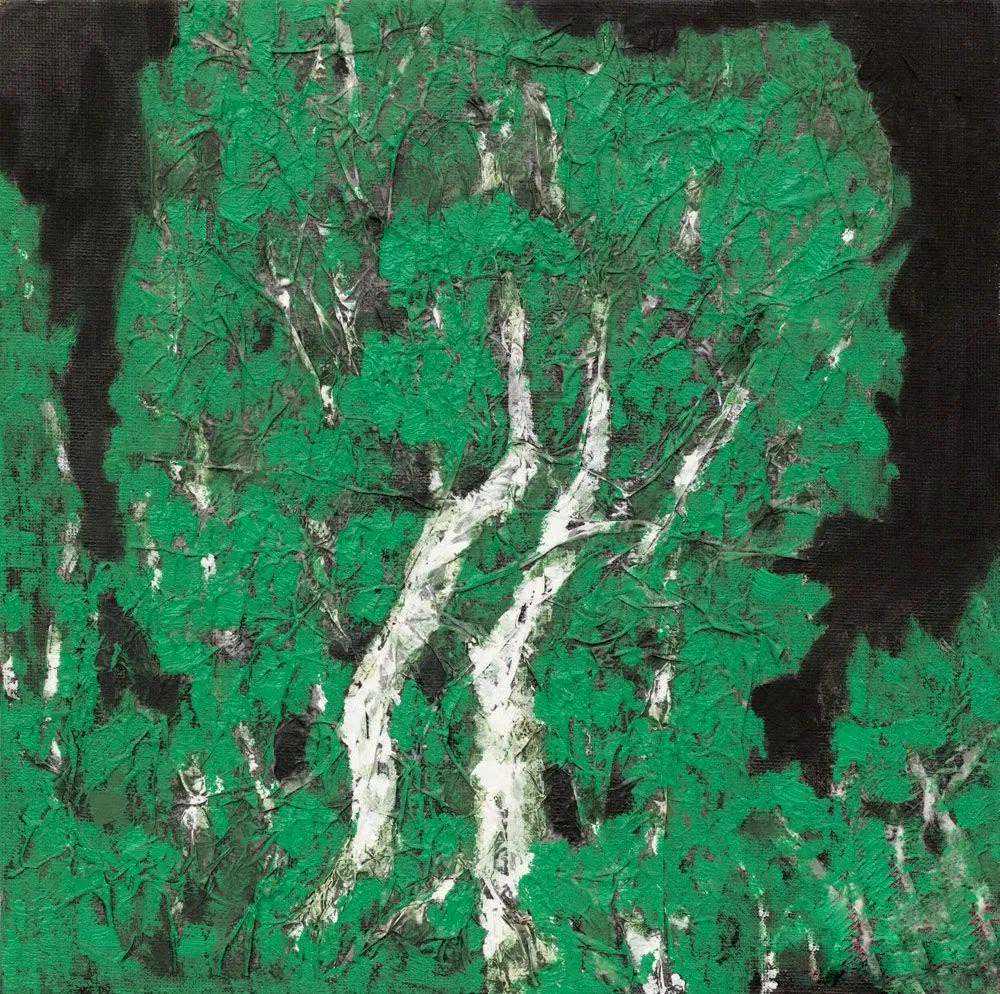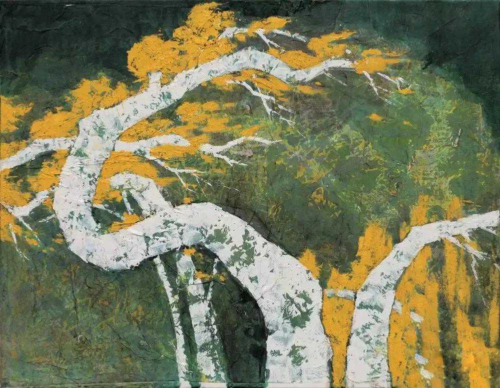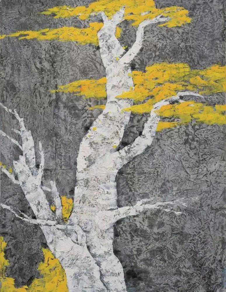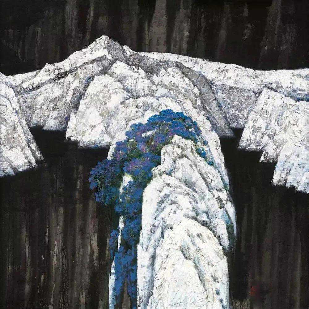 放眼当今画坛,闻先生无疑是具有鲜明个性的,尤其是他由红烛精神发展出的红色更是他的鲜明风格。他的画中如铁铸的造型与线条充满了力量感,那些遒劲有力的松柏便是国之脊梁,那如鲜血的红便是父辈的革命精神。