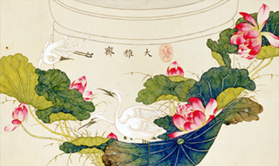 以故宫所藏的清光绪粉彩荷花鹭鸶纹碗为原型。