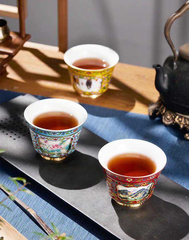 当你与挚友围坐,茶席得珐琅彩映衬,言语之间,清香慢溢,岂不妙哉?