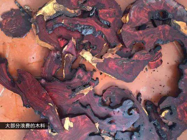紫檀极少生病,而树瘤是树木生病后形成的,因此树瘤中可能会出现腐烂开裂、空洞,甚至烂心,所以在加工小叶紫檀瘿子料时存在一定的风险,加工者可能会得到不少废料,导致加工出的手串数量远不如一般料得到的多。