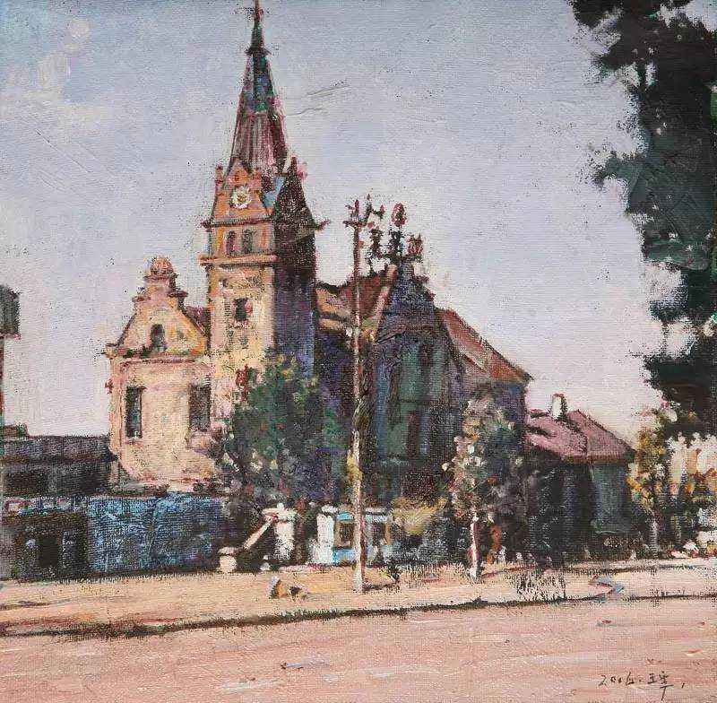 ➤青岛老火车站写生26cm×26cm1958年