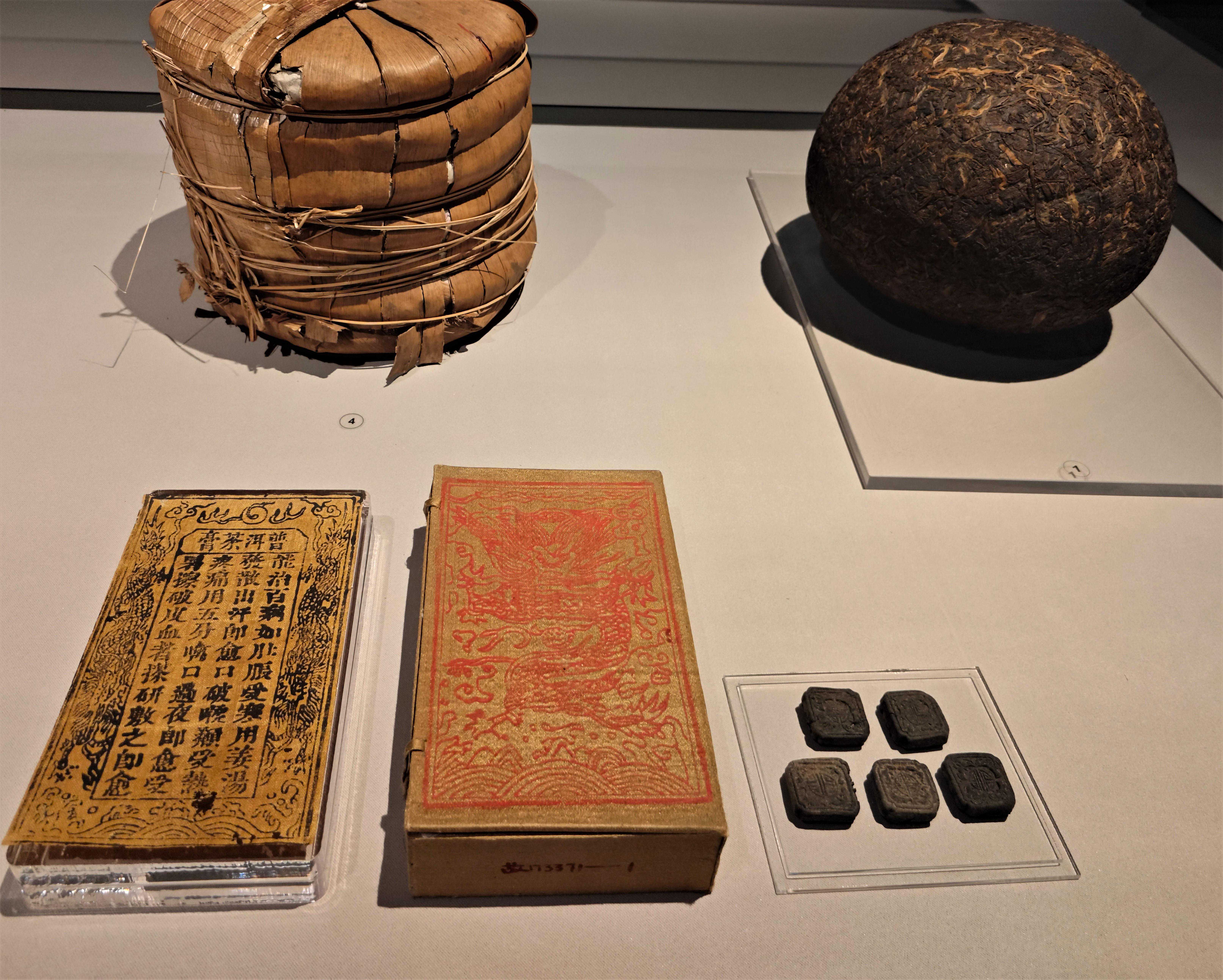 茶饼(左上)、茶团(右上)、茶膏(下)