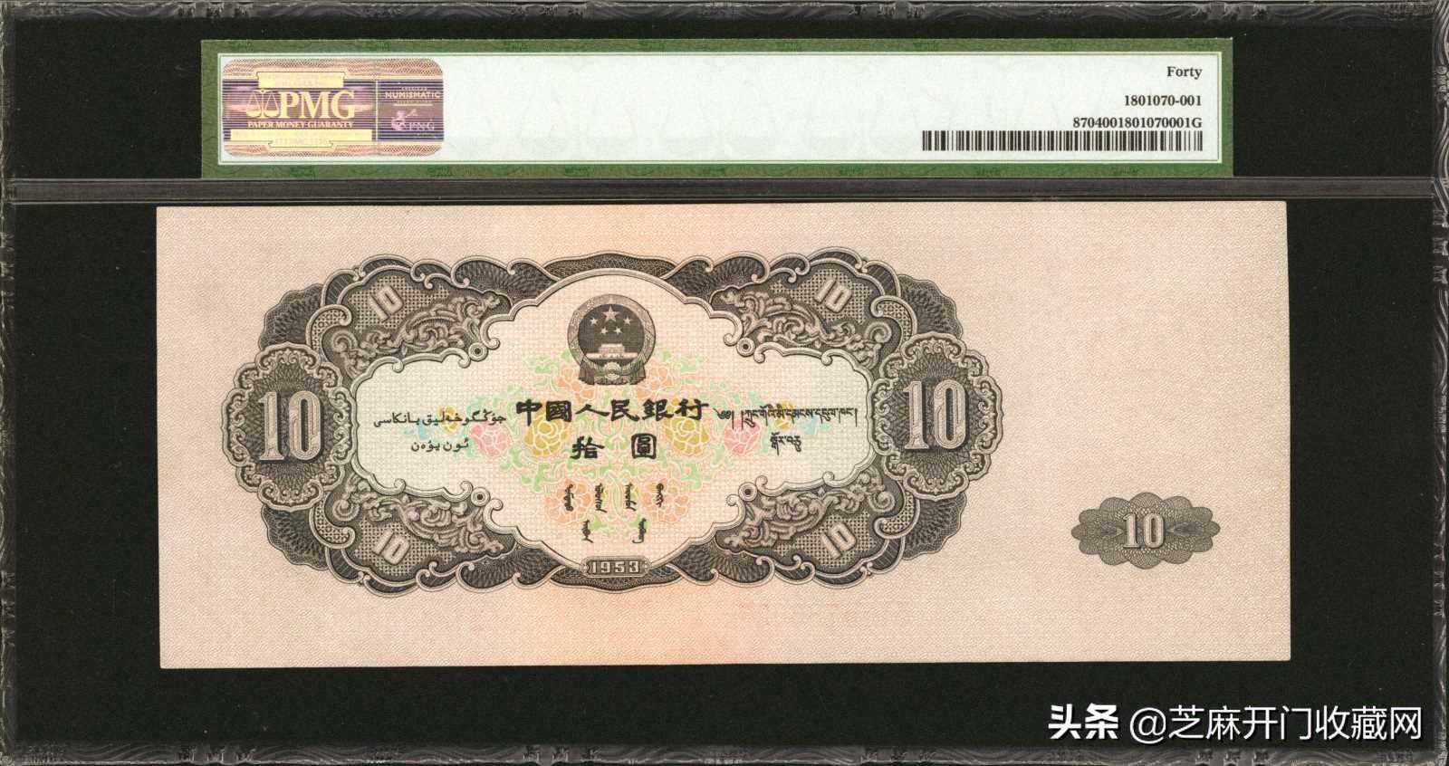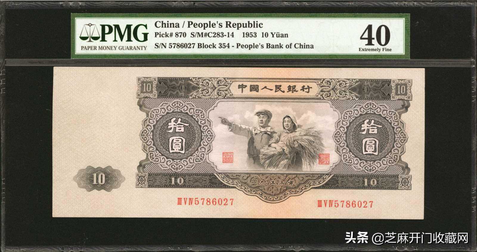 1953年第二版人民币拾圆PMGXF40,估价:USD20000-25000,成交价格:USD21600