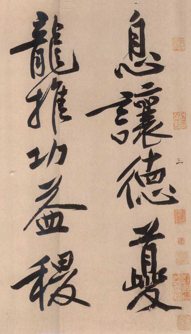 【释文】维十有一年,皇帝御天下之十二载也。道被域中,威加海外;六和同轨,八荒有截;功成名定,时和岁阜。越二月,东巡狩至于洛邑,肆觐礼毕,玉銮旋轸;度崤函之险,践分陕之地;缅维列圣,降望大河;砥柱之峰桀立,大禹之庙斯在;冕弁端委,远契刘子;禹无闲然,玄符仲尼之叹,皇情乃睠,载怀仰止。爰命有司勒铭兹石祝之,其词曰:大哉伯禹!水土是职;挂冠莫顾,过门不息;让德夔龙,推功益稷;栉风沐雨,卑宫菲食;汤汤方割,襄陵伊始;事极名正,图穷地里;兴利除害,为纲为纪;寝庙为新,盛德必祀;傍临砥柱,北眺龙门;茫茫旧迹,浩浩长源;勒斯铭以纪绩,与山河而永存!魏公有爱君之仁,有责难之义。其智足以经世,其德足以服物,平生欣慕焉。时为好学者书之,忘其文之工拙,我但见其妩媚者也。吾友杨明叔,知经术,能诗,喜属文,吏干公家如己事。持身清洁,不以谀言以奉于上智;亦不以骄慢以诳于下愚。可告以郑公之事业者也。或者谓:世道极颓,吾心如砥柱。夫世道交丧,若水上之浮沤;既不可以为人之师表,又不可以为人臣之佐则。砥柱之文座傍,并得两师焉。虽然,持砥柱之节以奉身;上智之所喜悦,下愚之所畏惧。明州亦安能病此而改节哉?