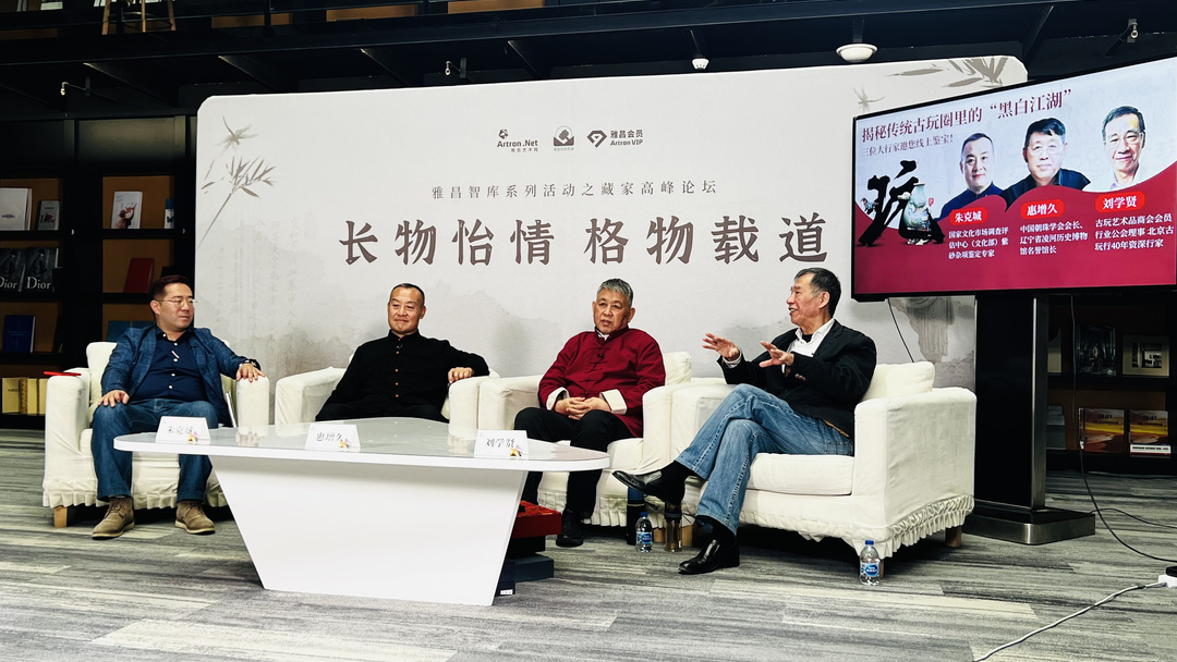 第二届雅昌藏家高峰论坛以【揭秘传统古玩圈里的“黑白江湖”】为主题,邀请国家文化市场调查评估中心(文化部)紫砂杂项鉴定专家朱克城先生,中国朝珠学会会长、辽宁省凌河历史博物馆名誉馆长惠增久先生,古玩艺术品商会会员、行业公会理事、北京古玩行40年资深行家刘学贤先生作客论坛,与各位藏友对谈传统古玩圈的历史变迁与经营之道,以及传授如何辨识古玩行里的“局”与“漏”、藏品辩假识真的鉴赏“秘籍”。