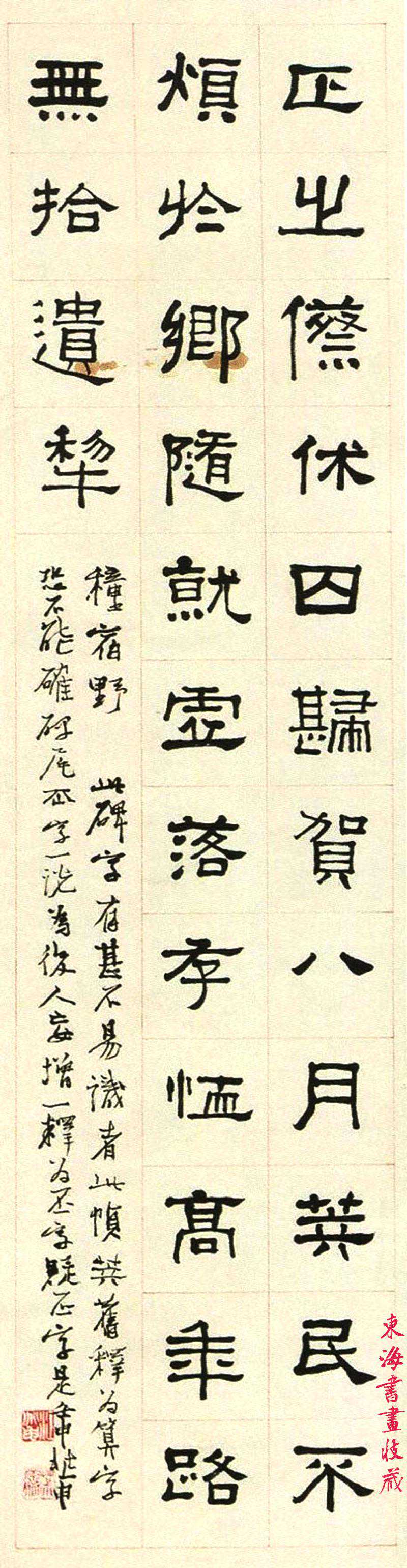 款识:种宿野。此碑字存甚不易识者,此帧□旧释为算字恐不能确。碑尾仚字一谈为后人妄增,一释为丕字疑丕字是。壬申兆申。